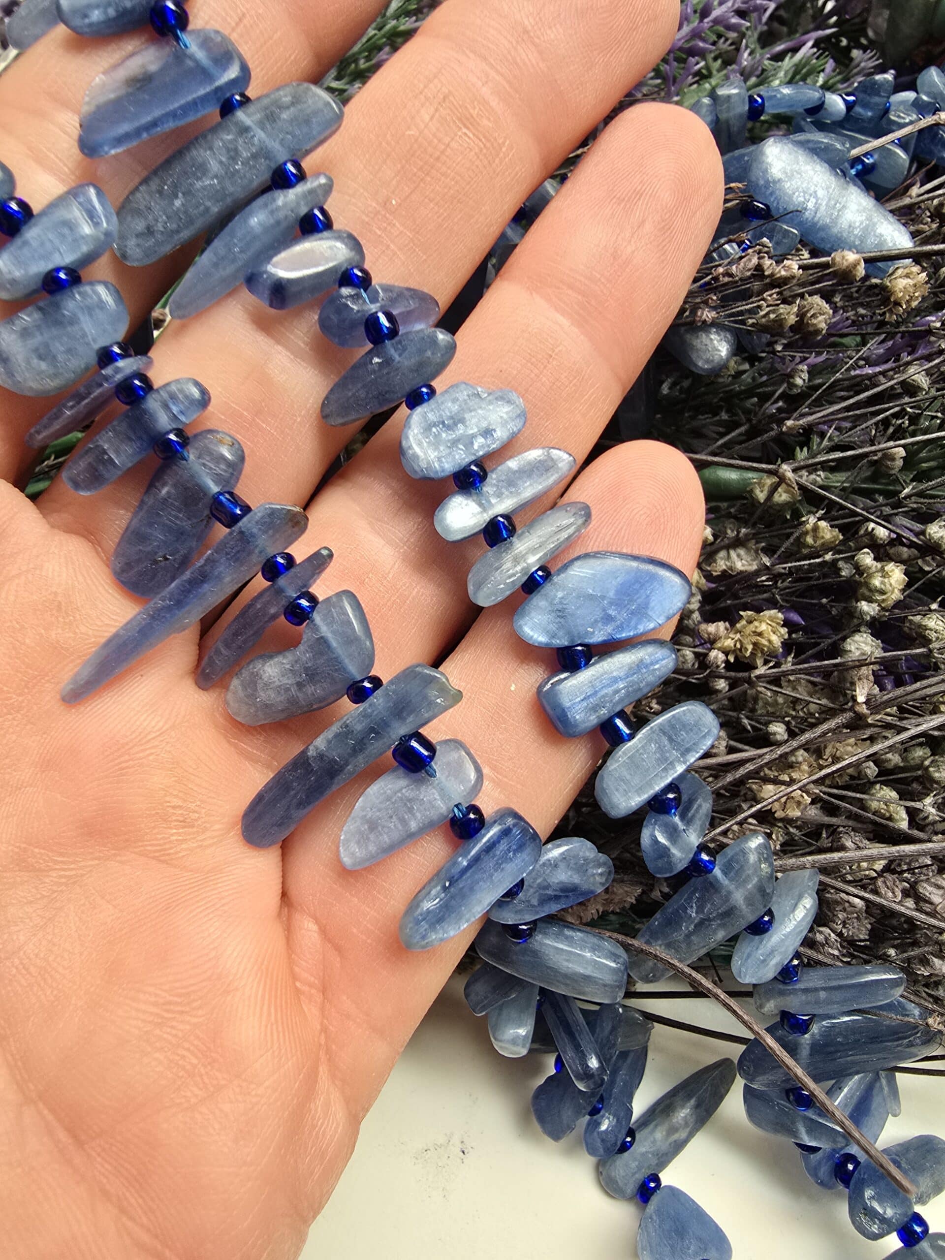 - Kyanit Doğal Taş 1 dizi uzunluğu 37 cm dir.