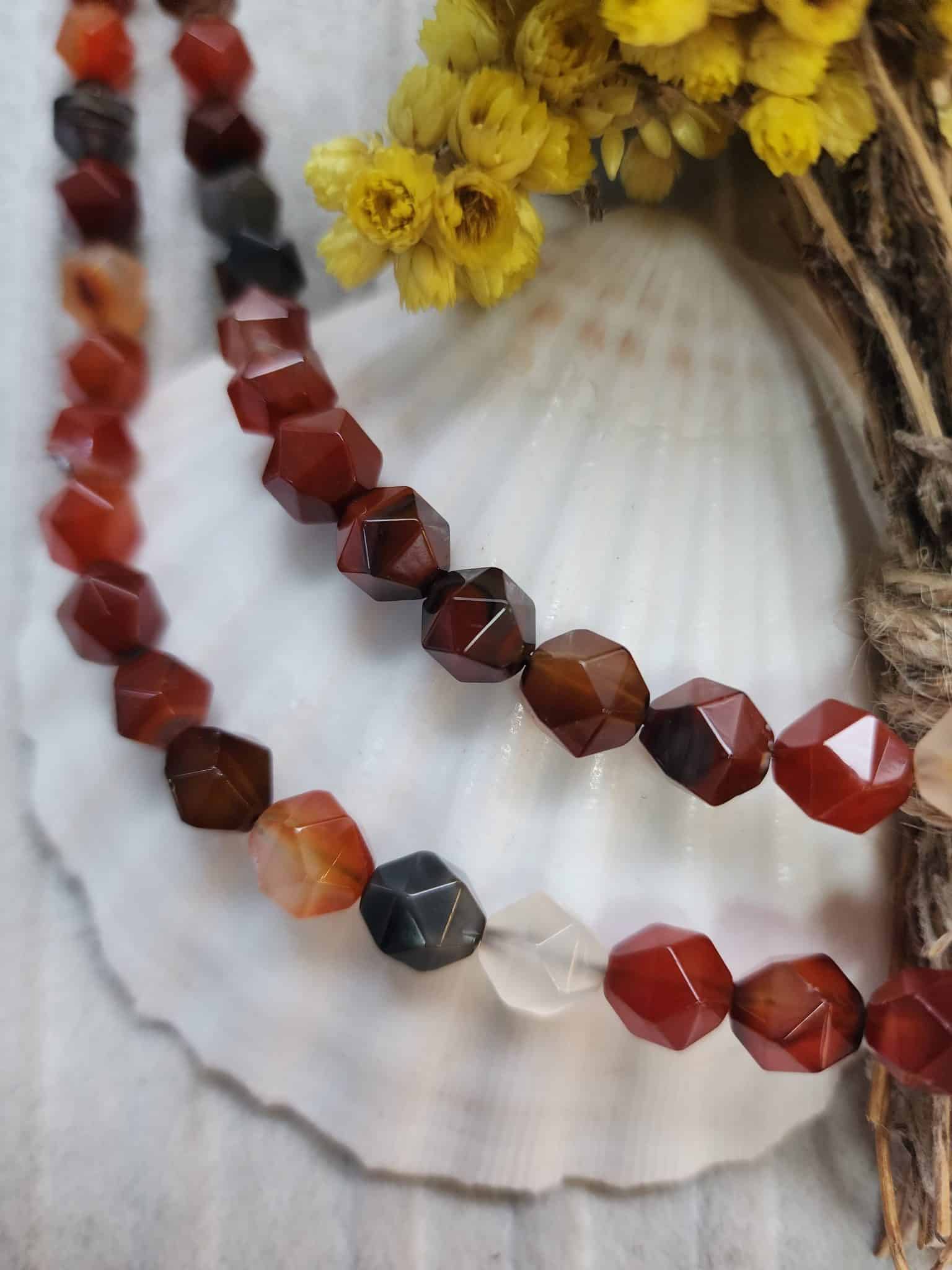- 10 MM Çokgen Karnelyan Akik dizi doğal taşı 30 taneden oluşur.
