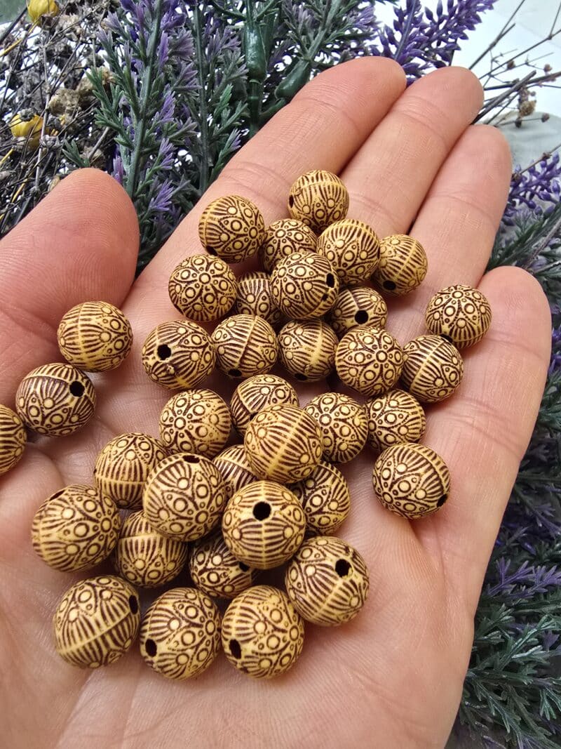 10 MM Desenli Küre Tahta Boncuk