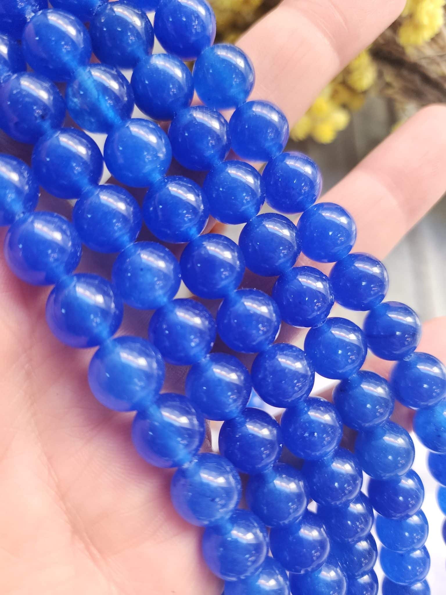 - 1 dizi 10 MM Mavi renkli ceyt doğal tasında 37-38 adet tanecik bulunur.