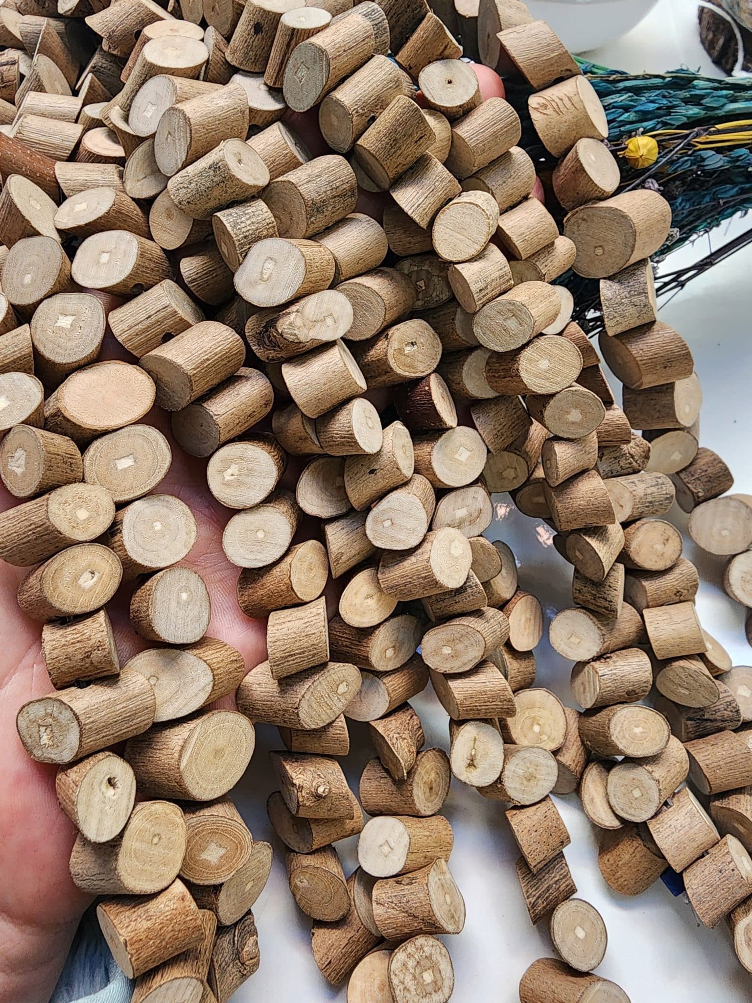 - Kütük ağacı boncukları dizi olarak satılır.
