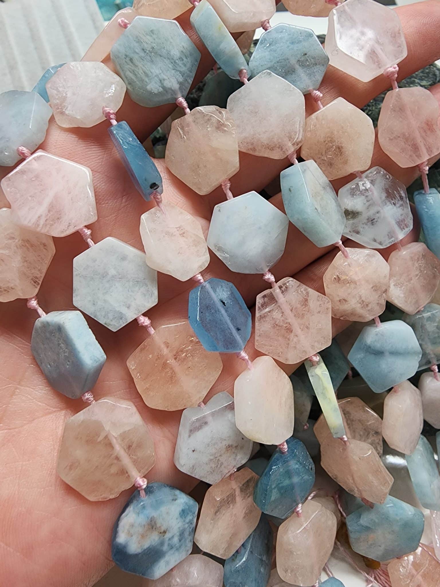 12 MM Petek Akuamarin Pembe Kuvars Mix :