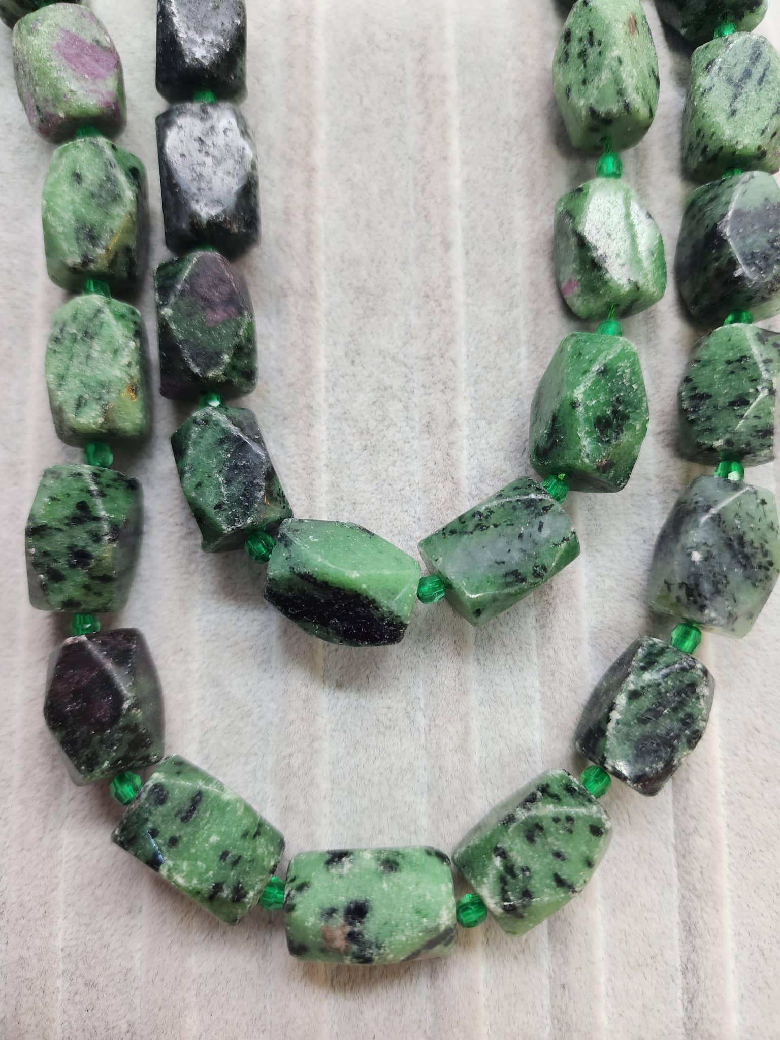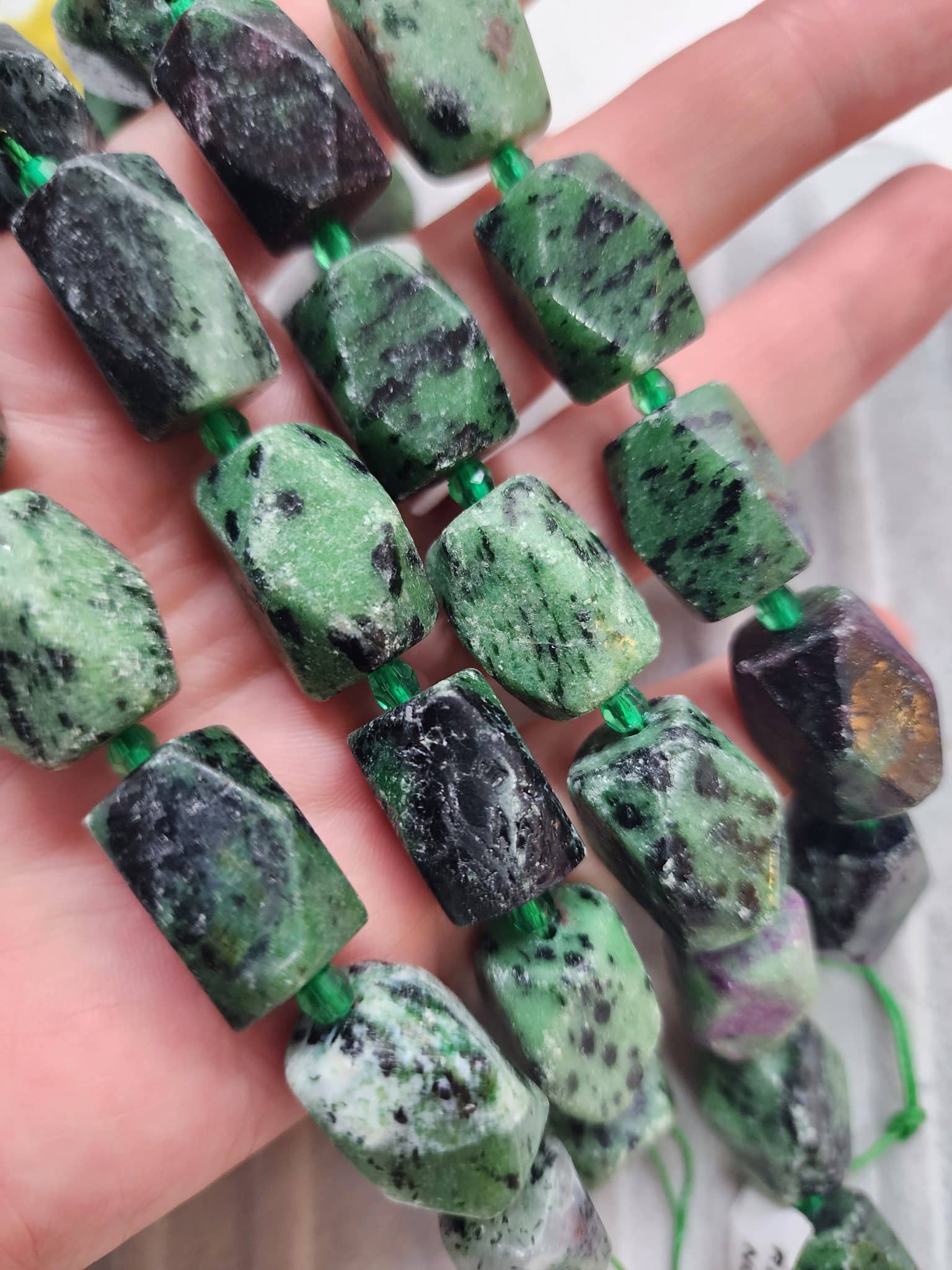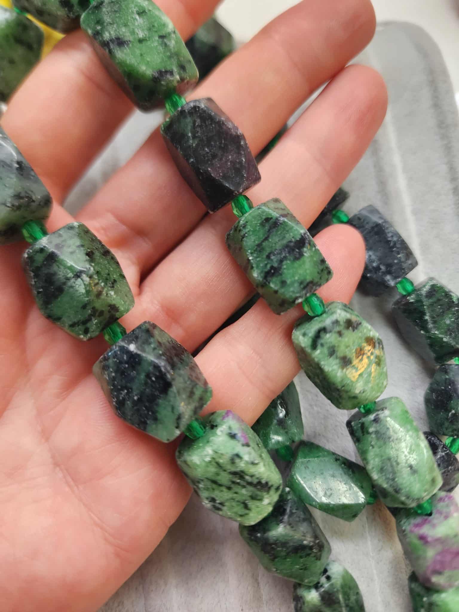 - 1 dizi Dikdörtgen Anyolit Zümrüt Taşı 17 adet olup 40 cm uzunluğunda.