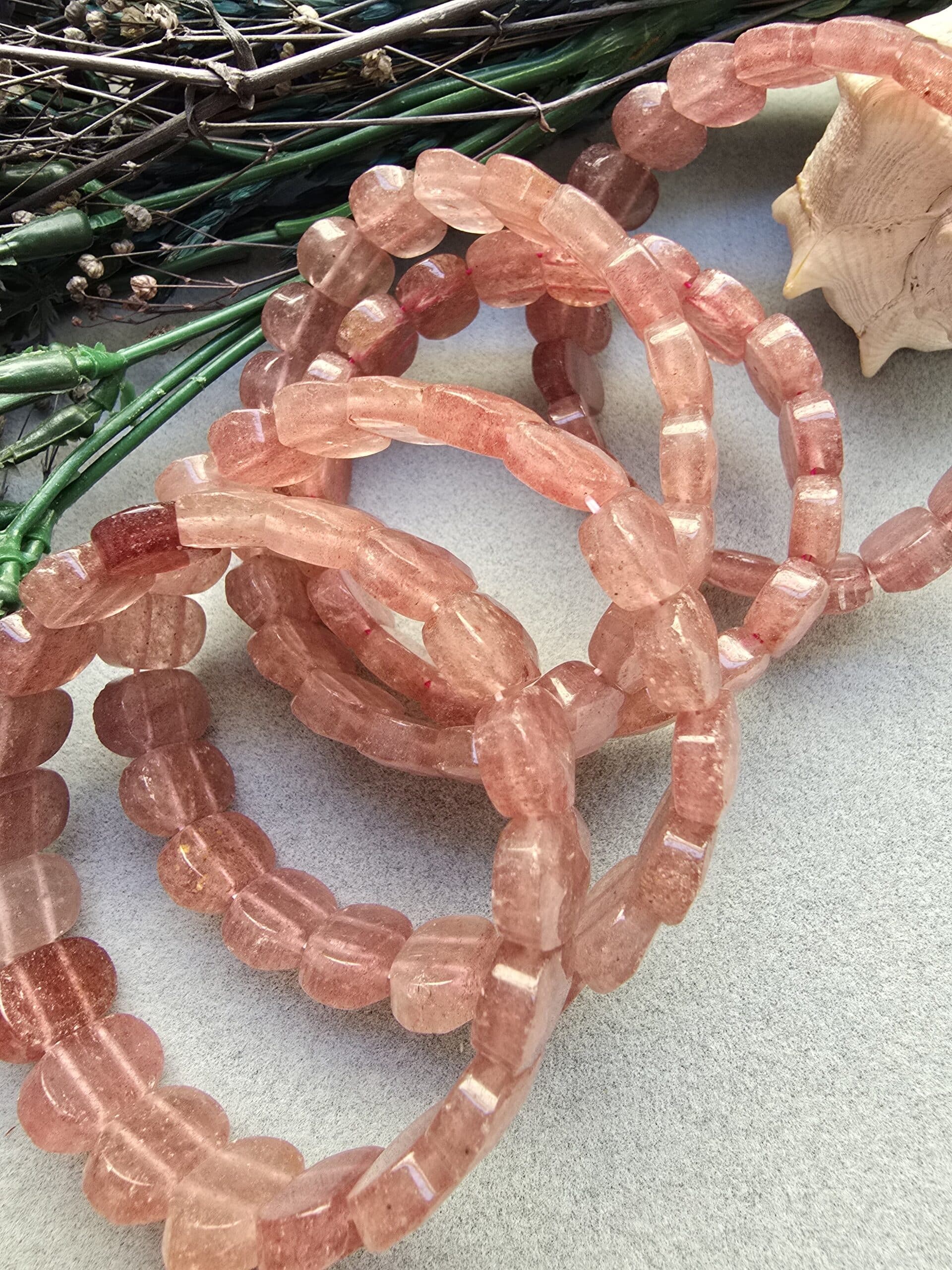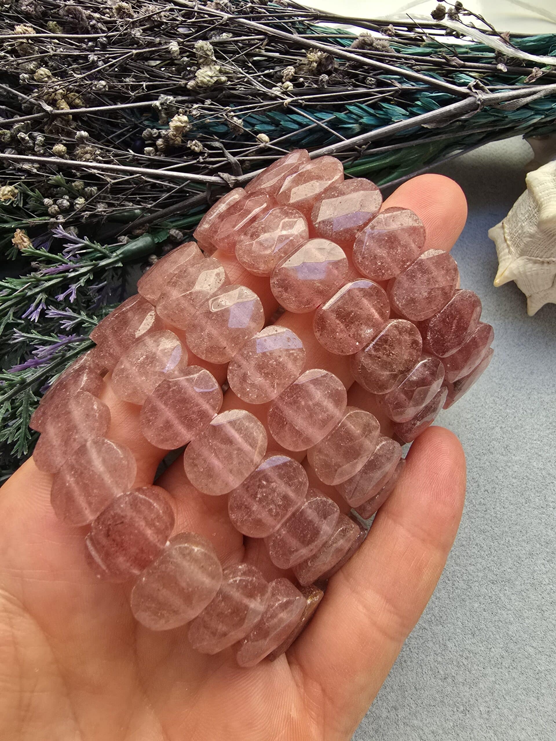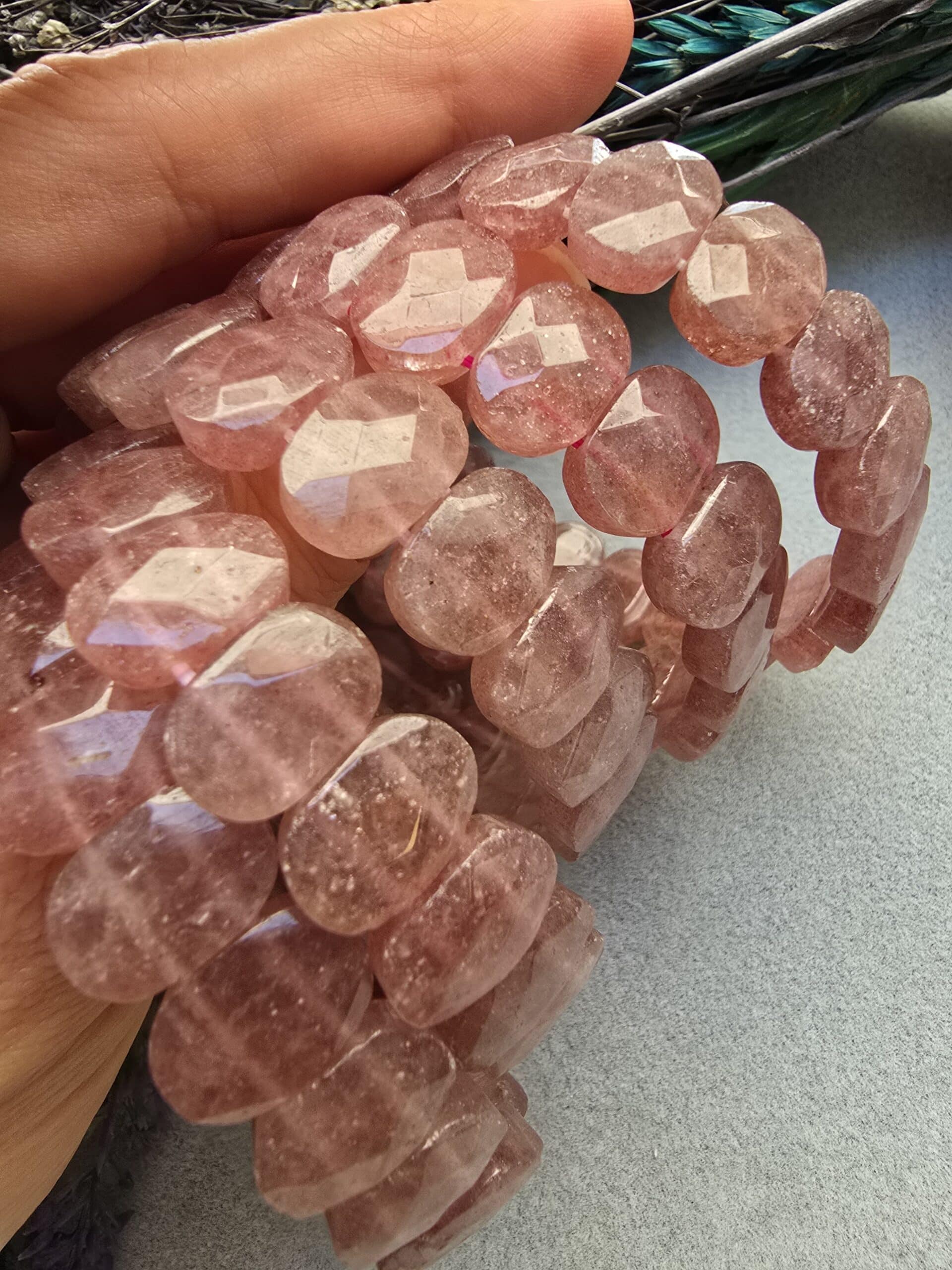 14 MM Fasetli Gül Kuvars Taşı Bileklik