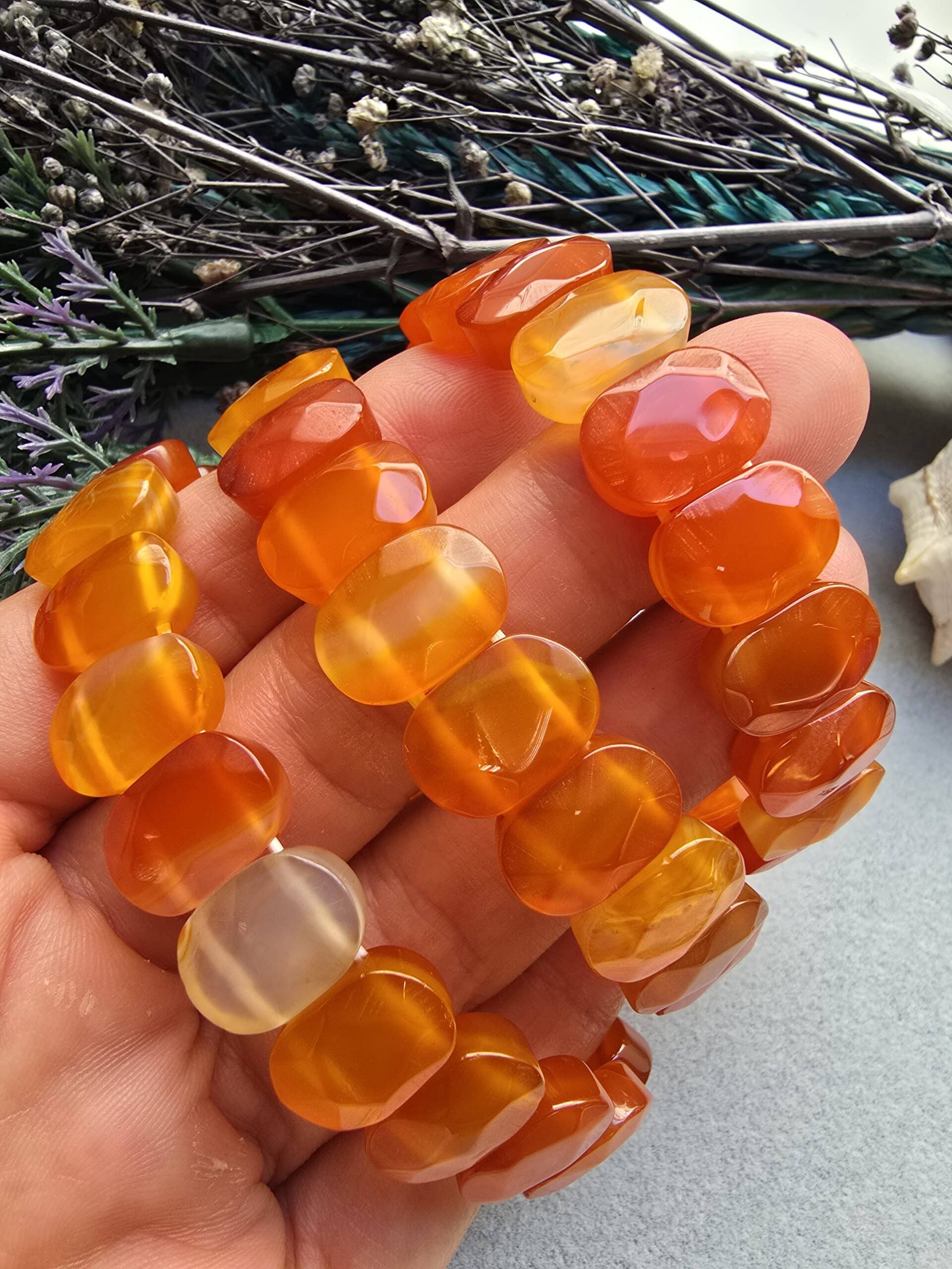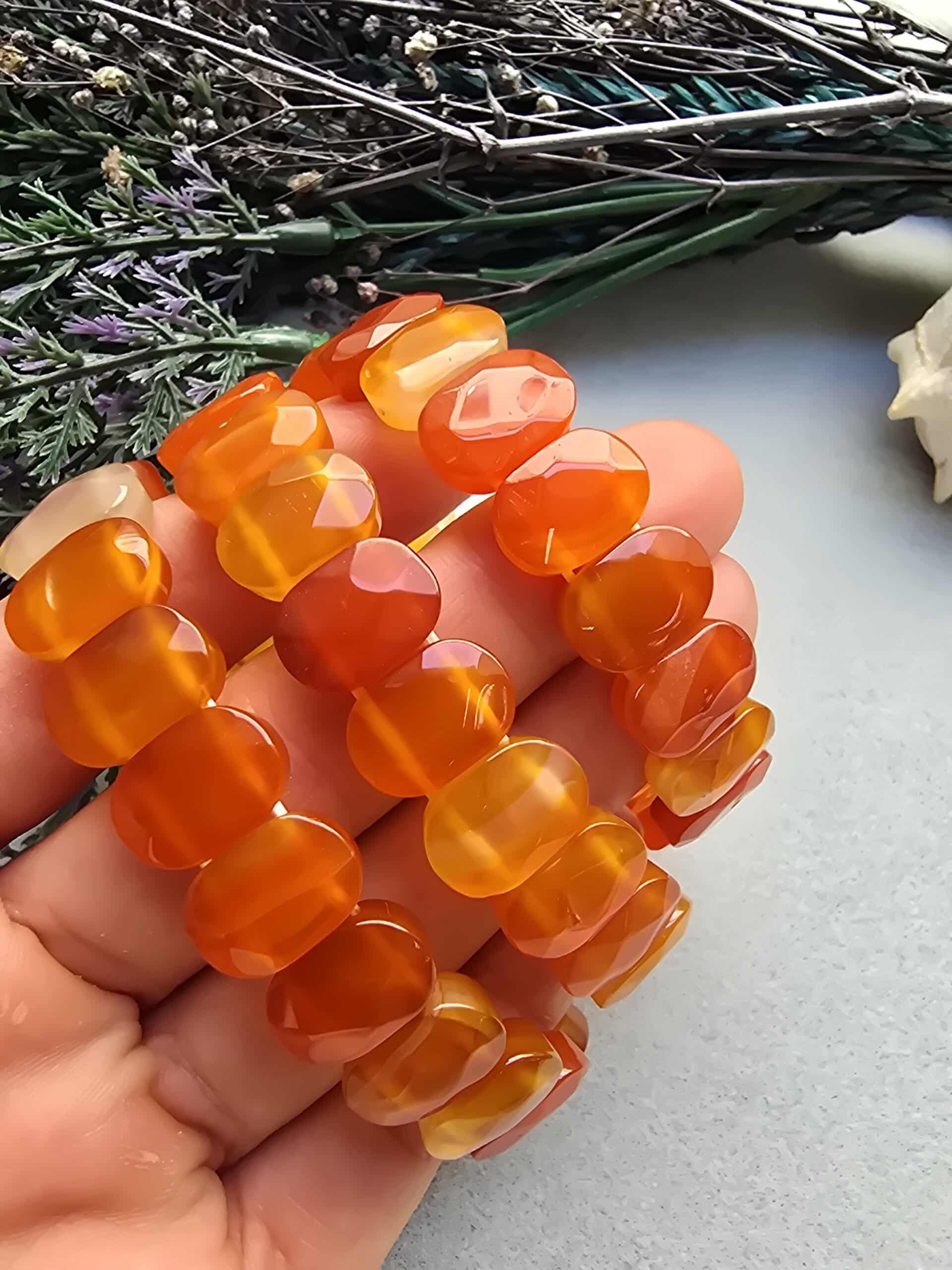 14 MM Fasetli Turuncu Madagaskar Akik Taşı Bileklik