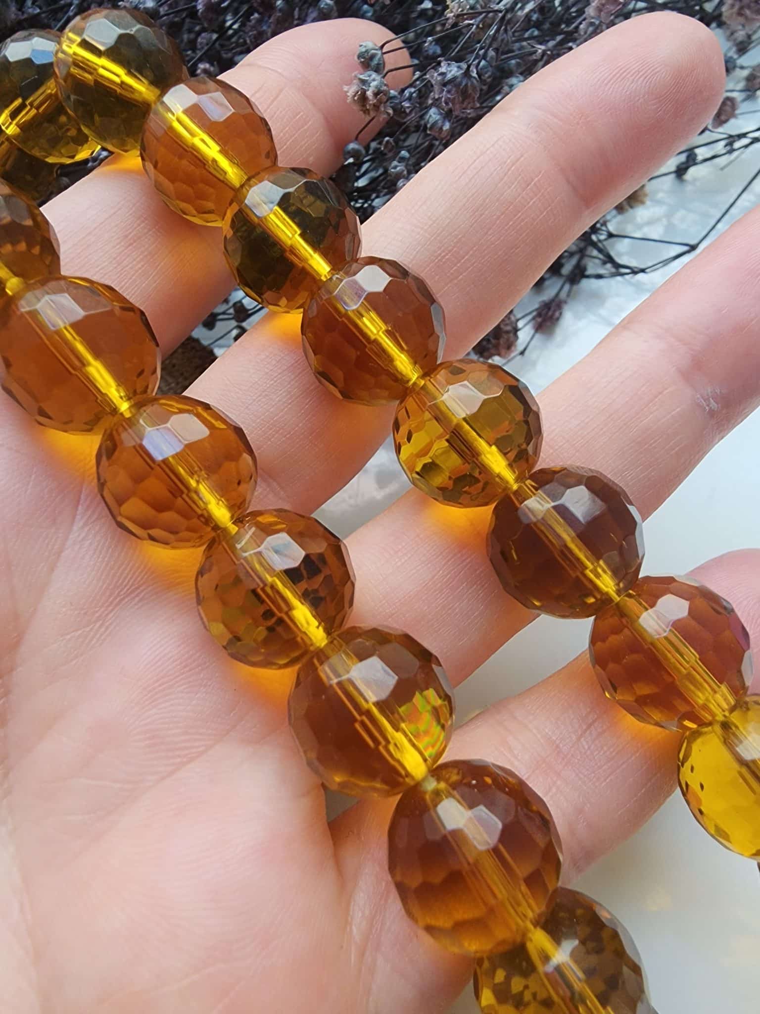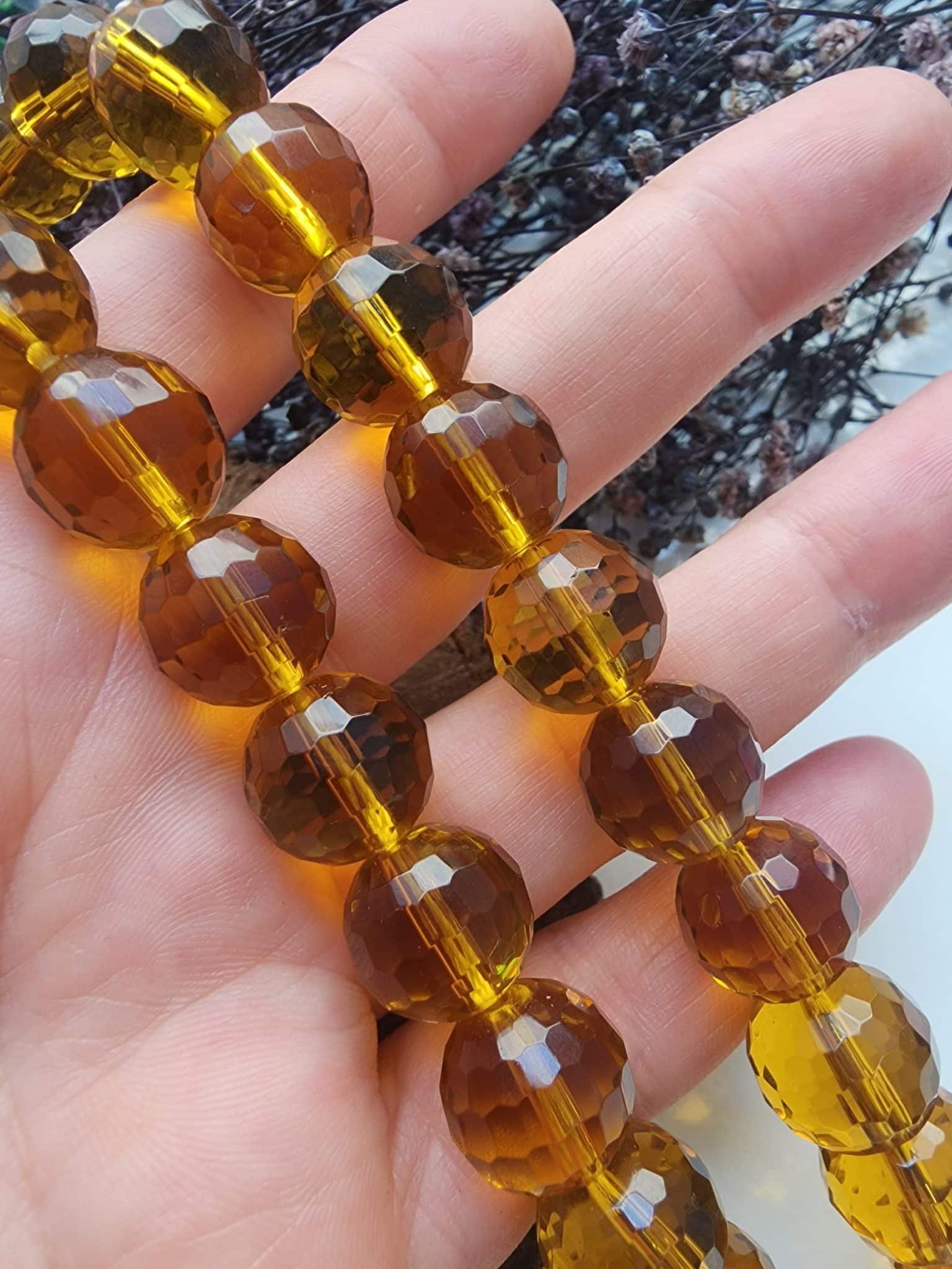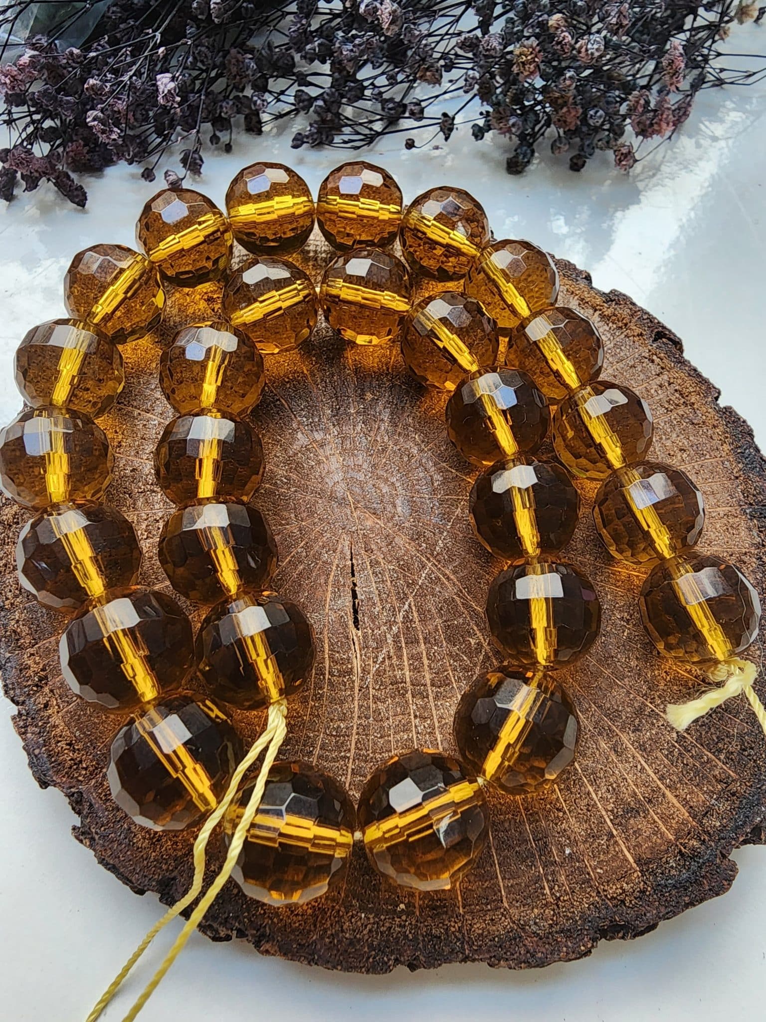 14 MM Kehribar Renkli Faset Kuvars Doğal Taş :