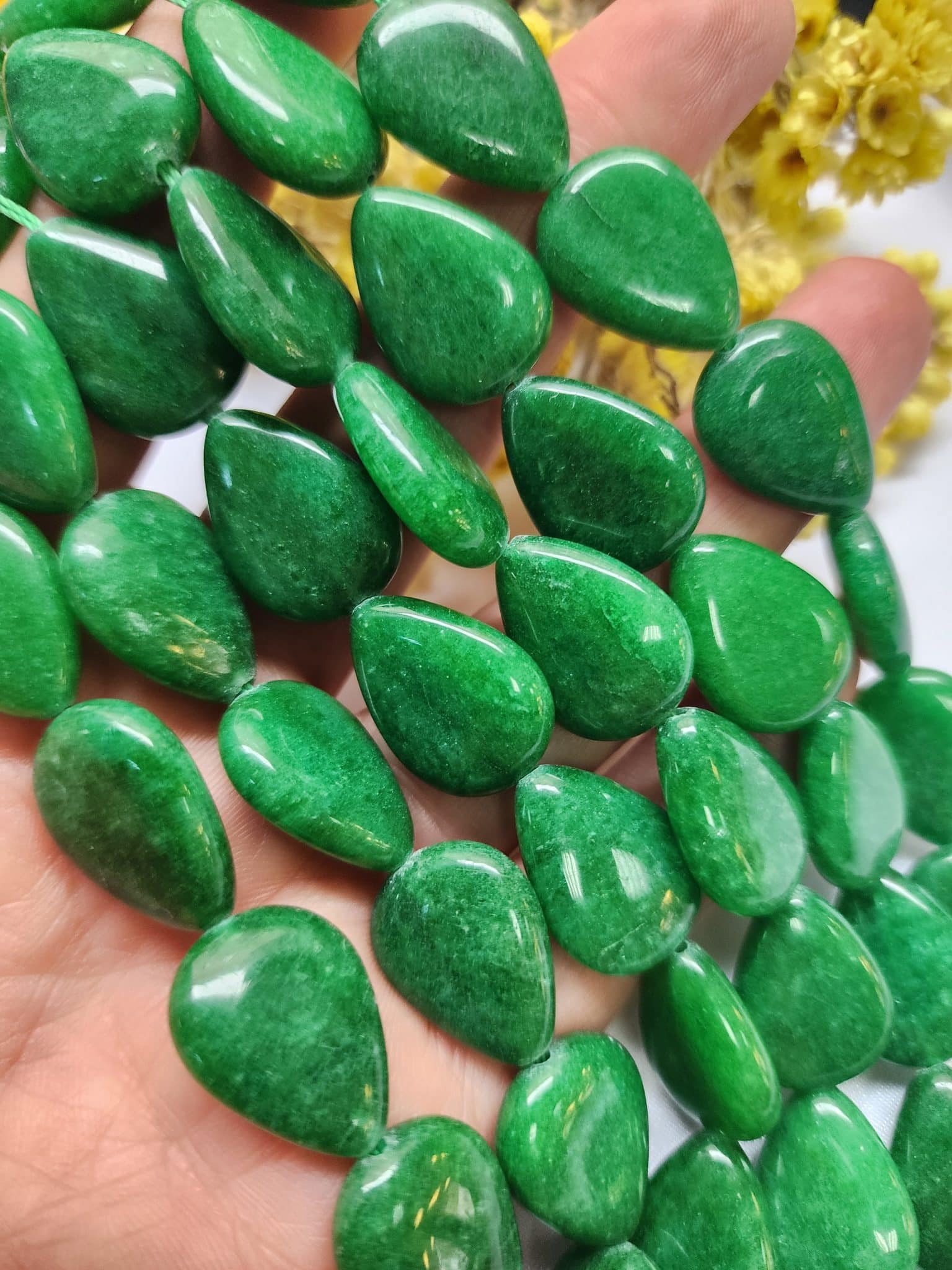 - 1 dizi Damla Aventurin renkli ceyt doğal tasında 20 adet tanecik bulunur.