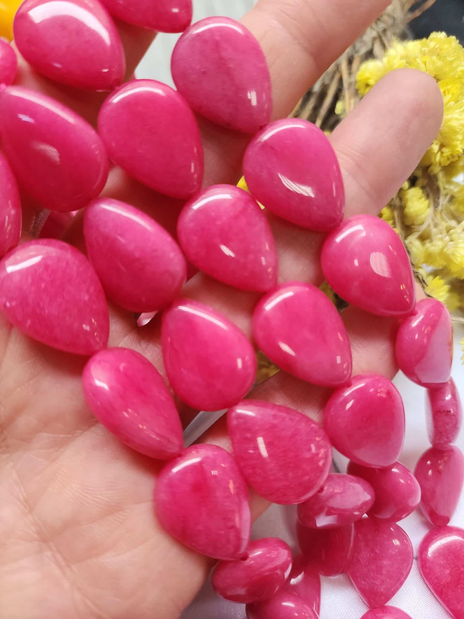 - 1 dizi Damla Pembe renkli ceyt doğal tasında 20 adet tanecik bulunur.