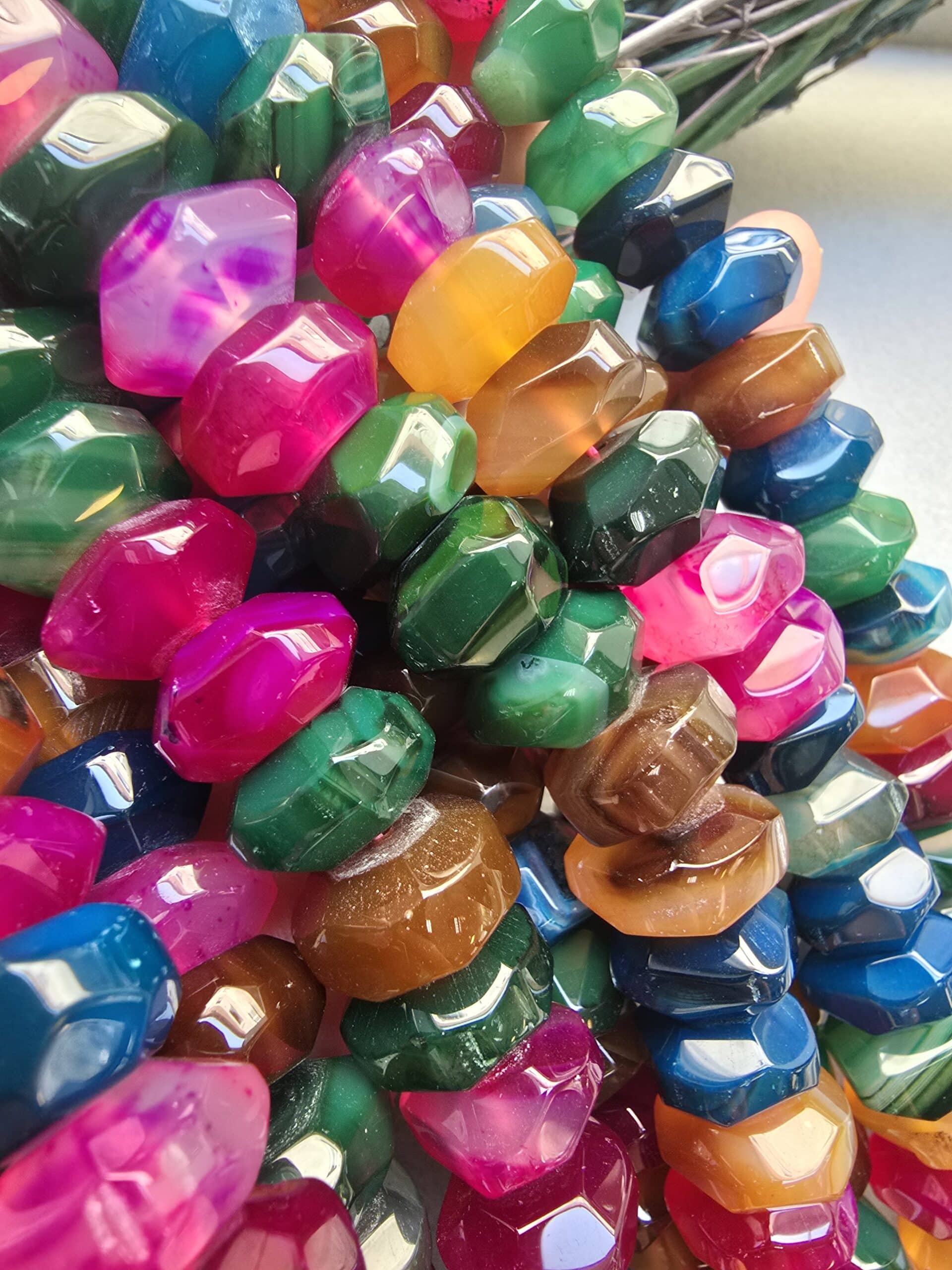 - Petek Rondela Mix Akik doğal taşlarımız dizi şeklinde satılır.