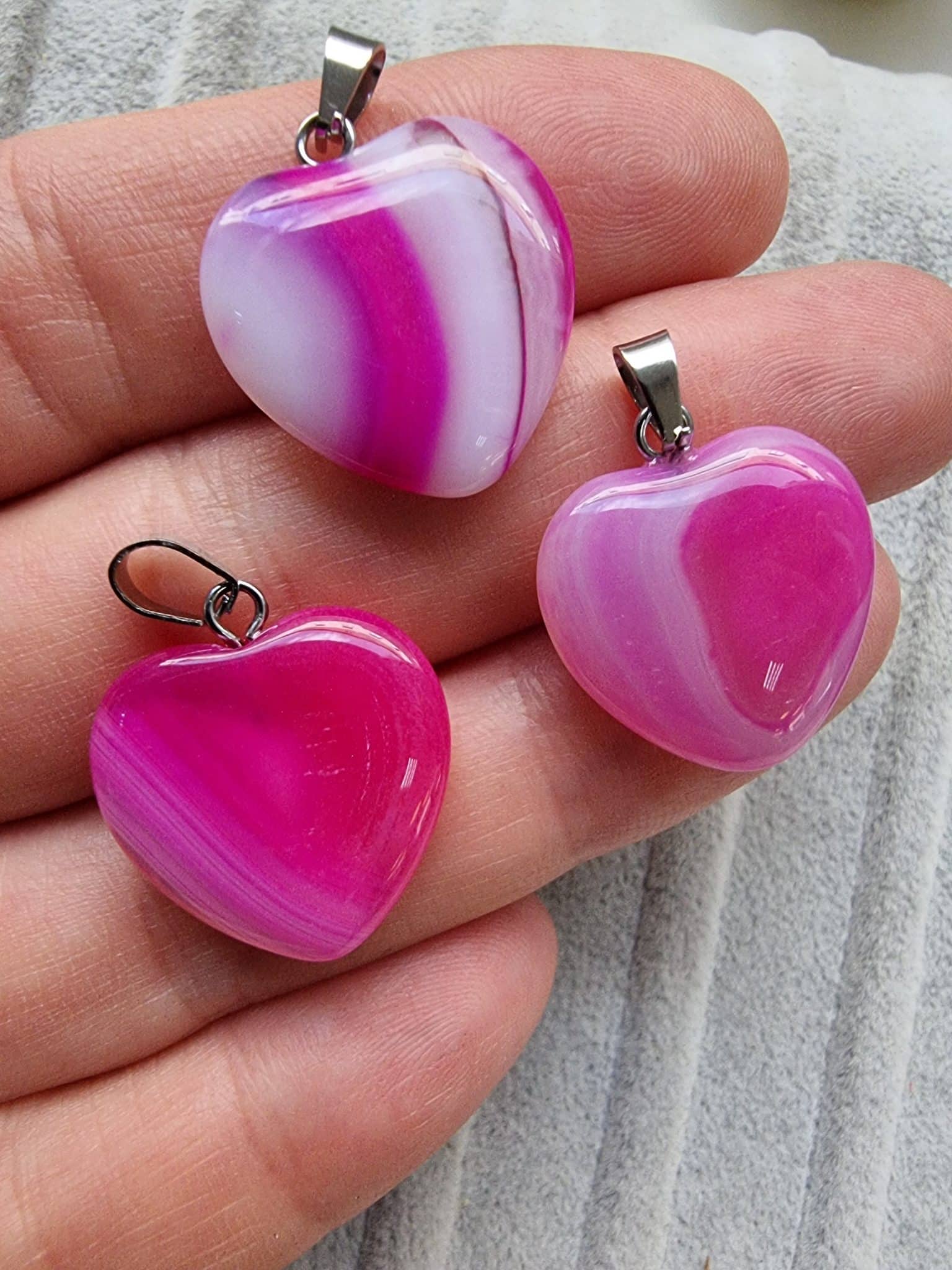 2 CM Pembe Kalp Akik Taşı Kolye Ucu :