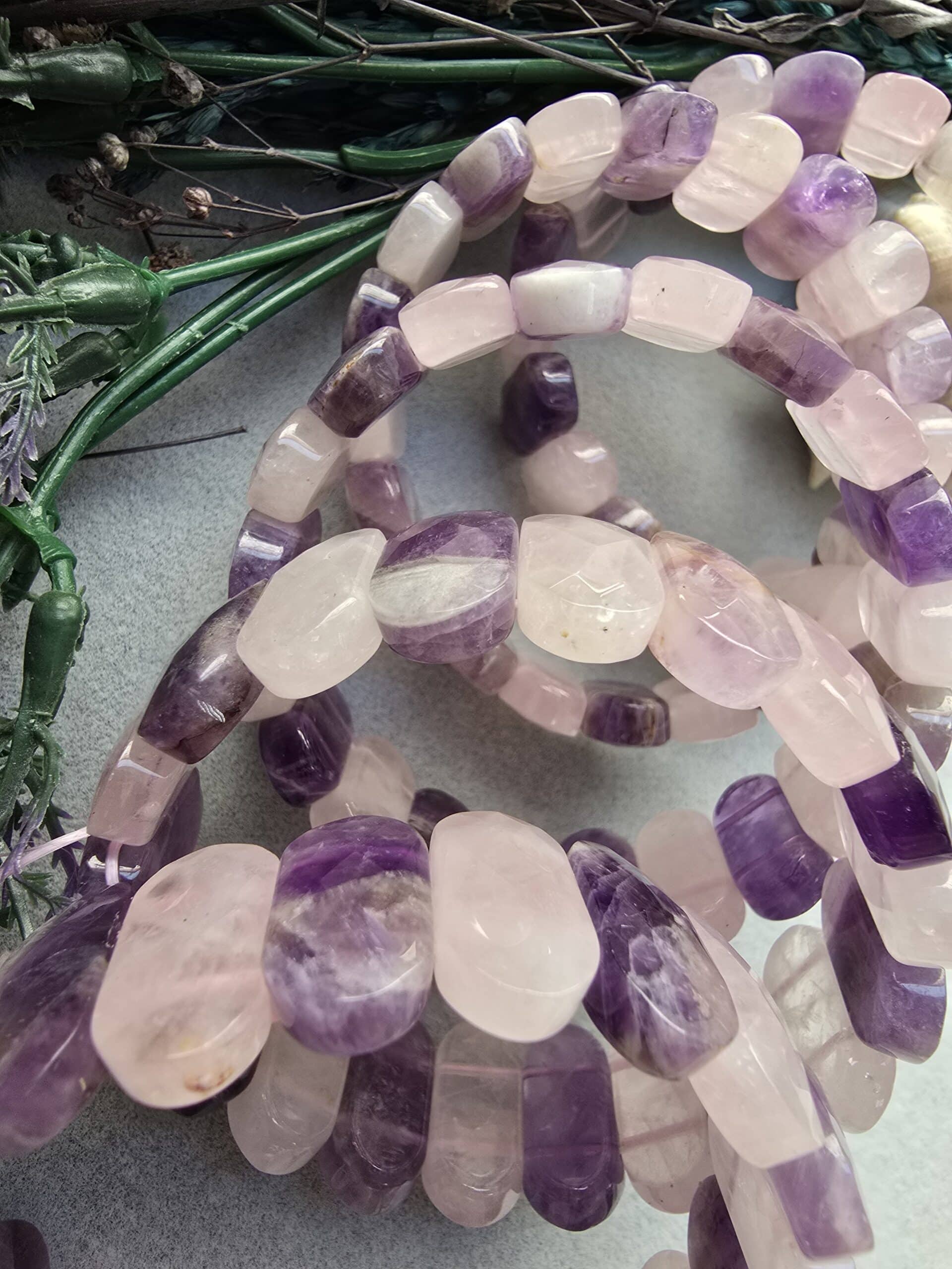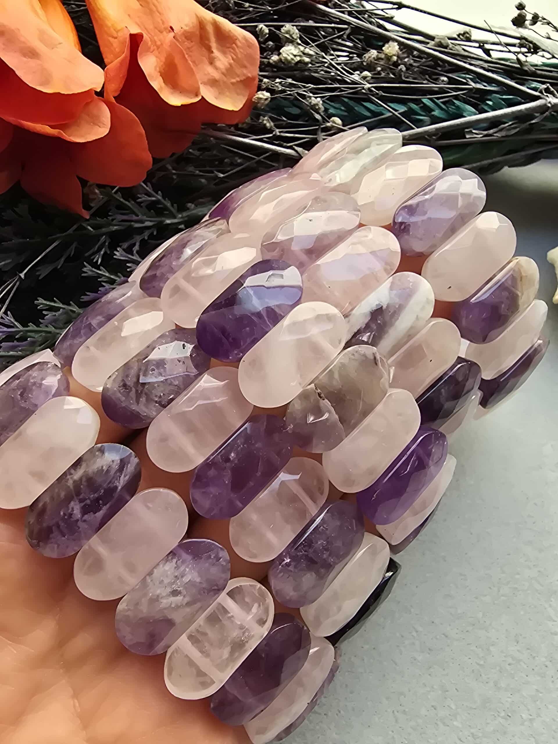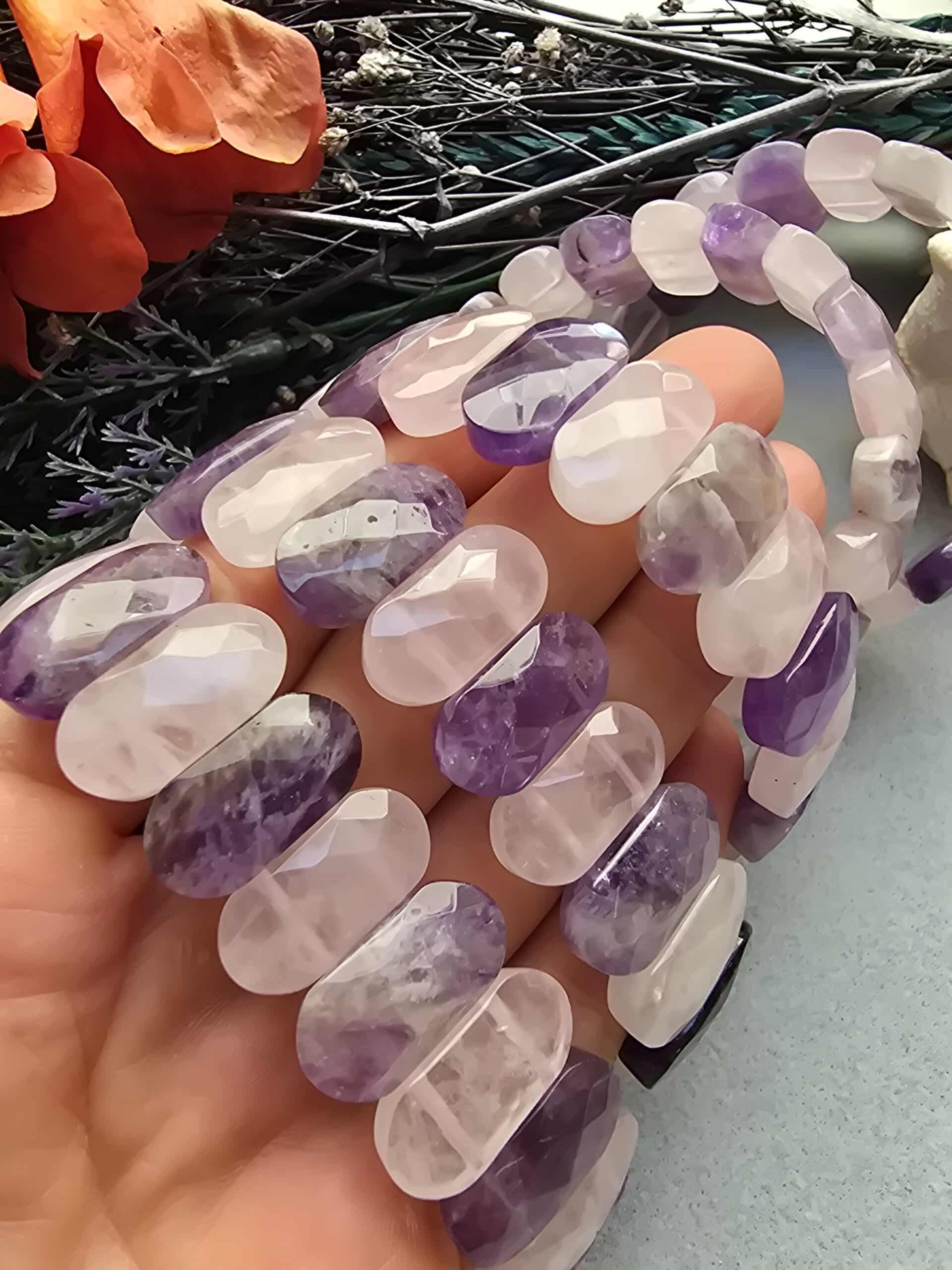 20 MM Pembe Kuvars Ametist Doğal Taş Bileklik