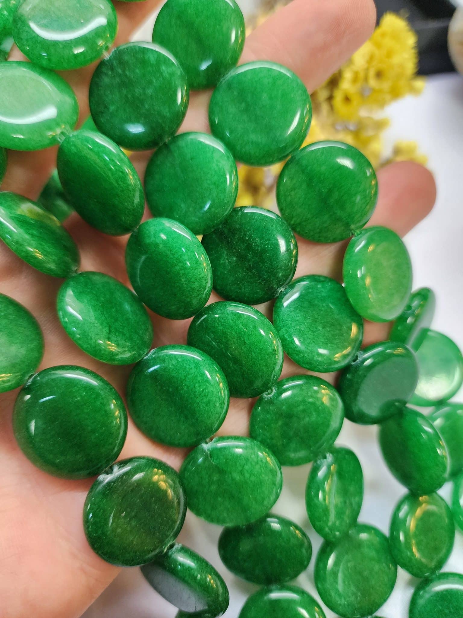 - 1 dizi Tablet Aventurin renkli ceyt doğal tasında 20 adet tanecik bulunur.