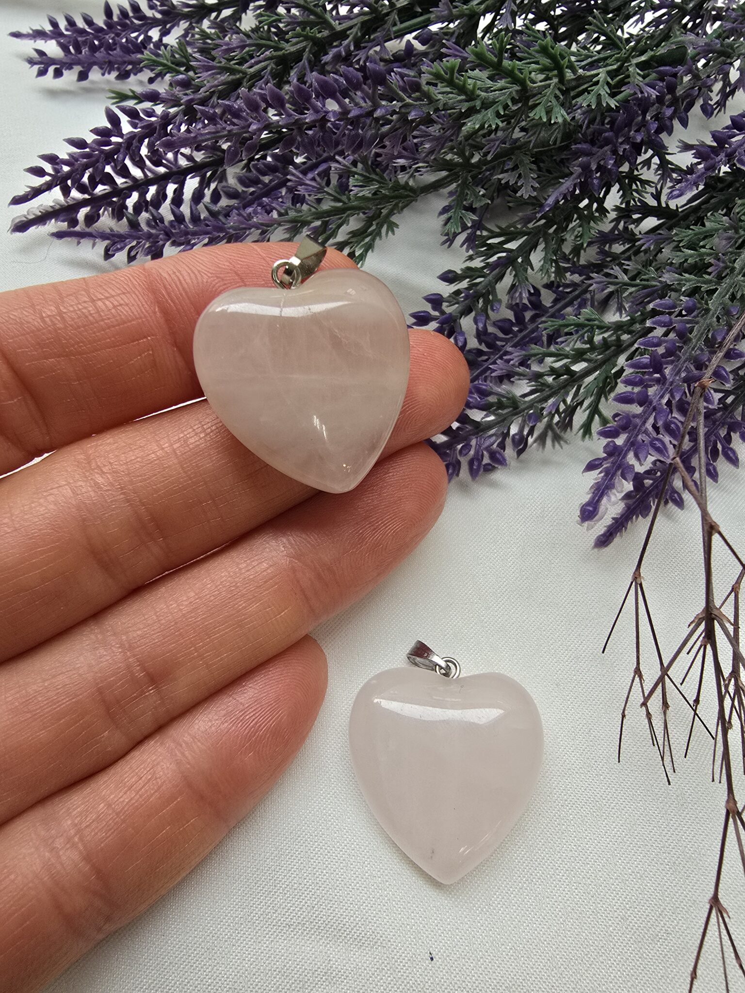 25 MM Kalp Pembe Kuvars Taşı Kolye Ucu