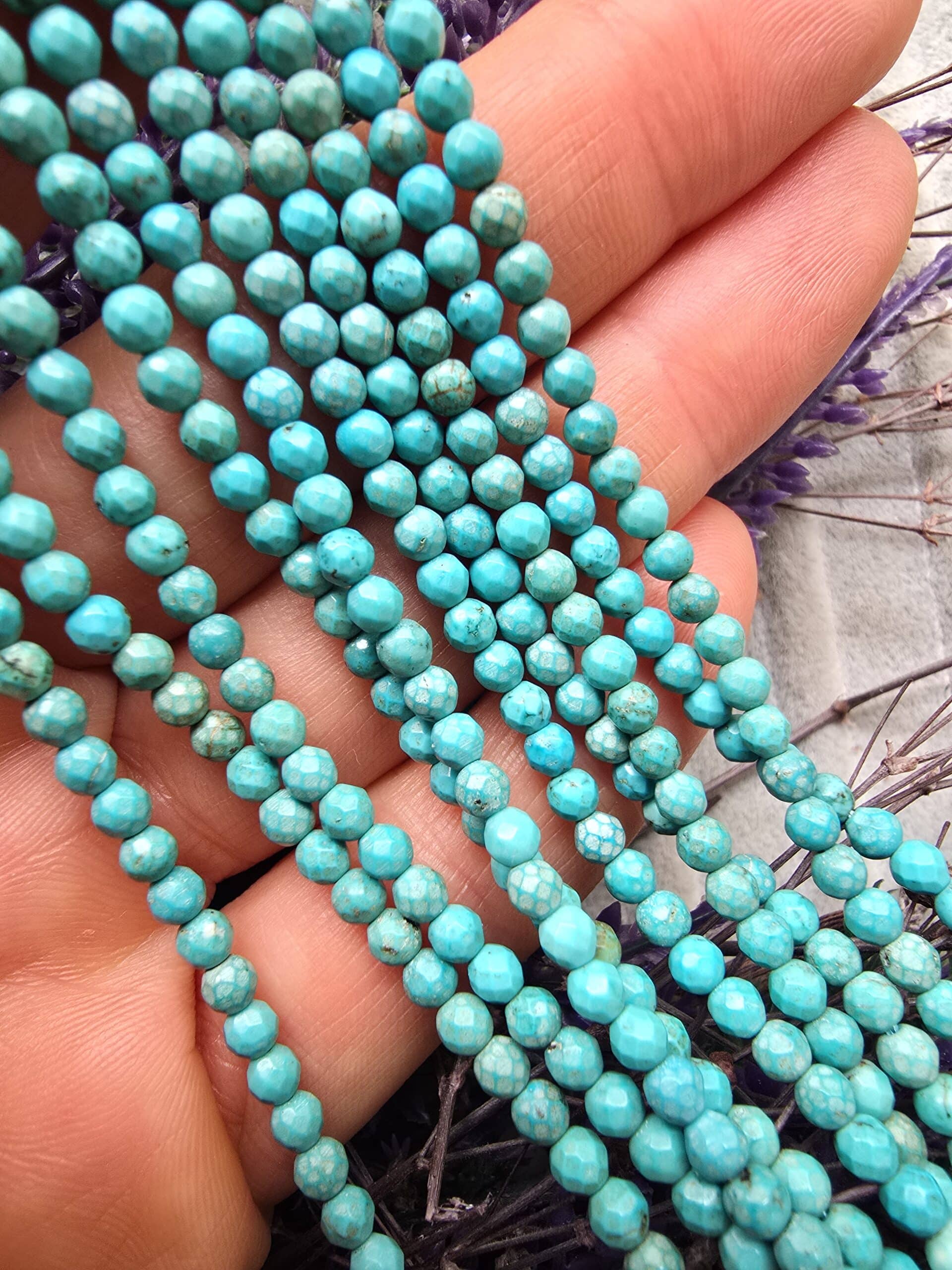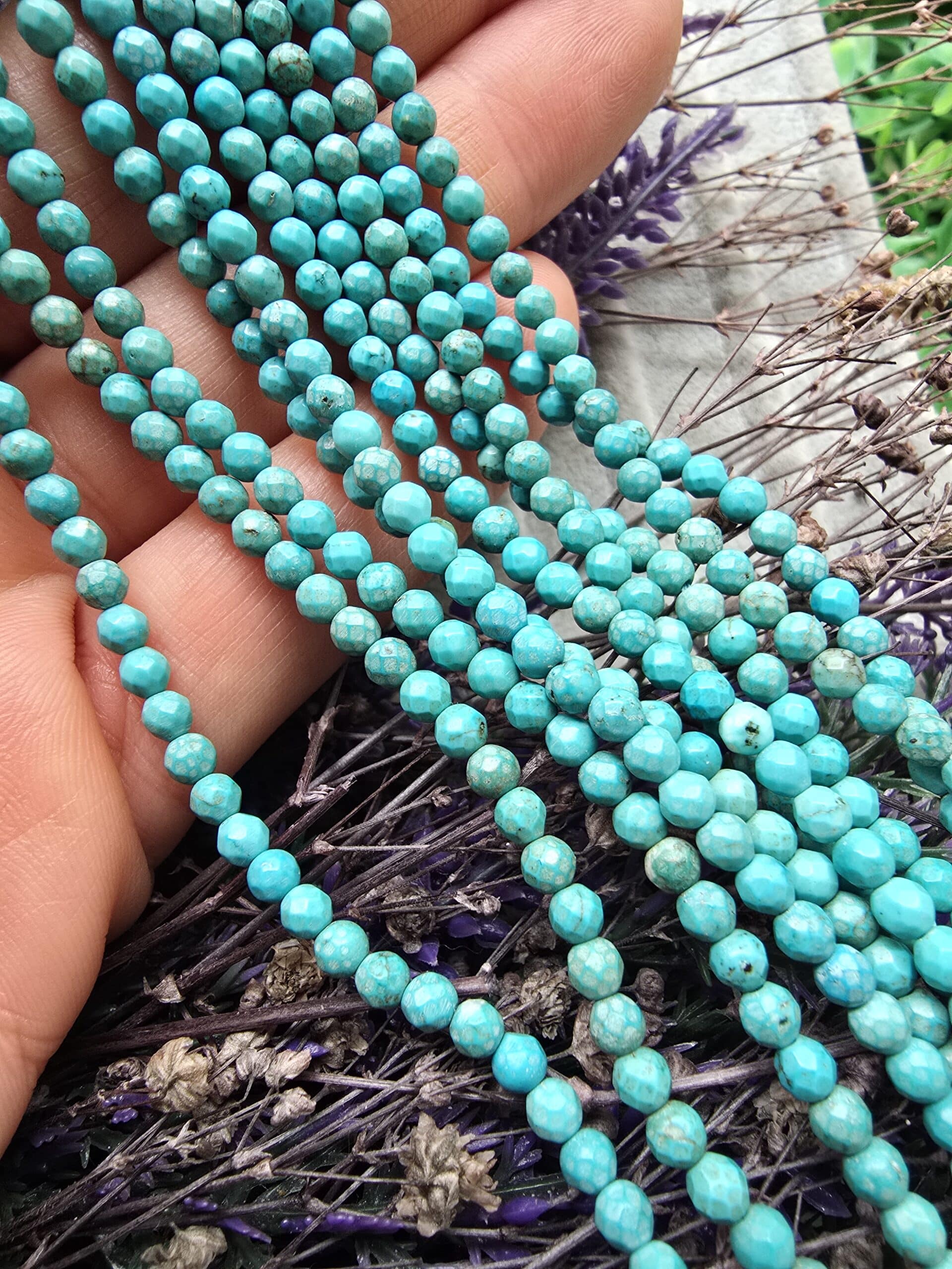 - Fasetli İran Turkuaz doğal taşı 3 MM boyutunda