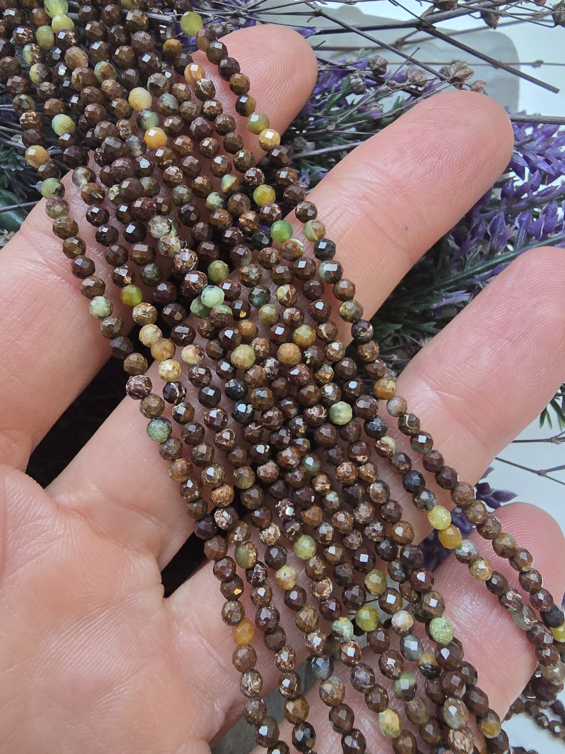 - 3 mm Küre Krizopras dizi doğal taş 110 taneden oluşur.