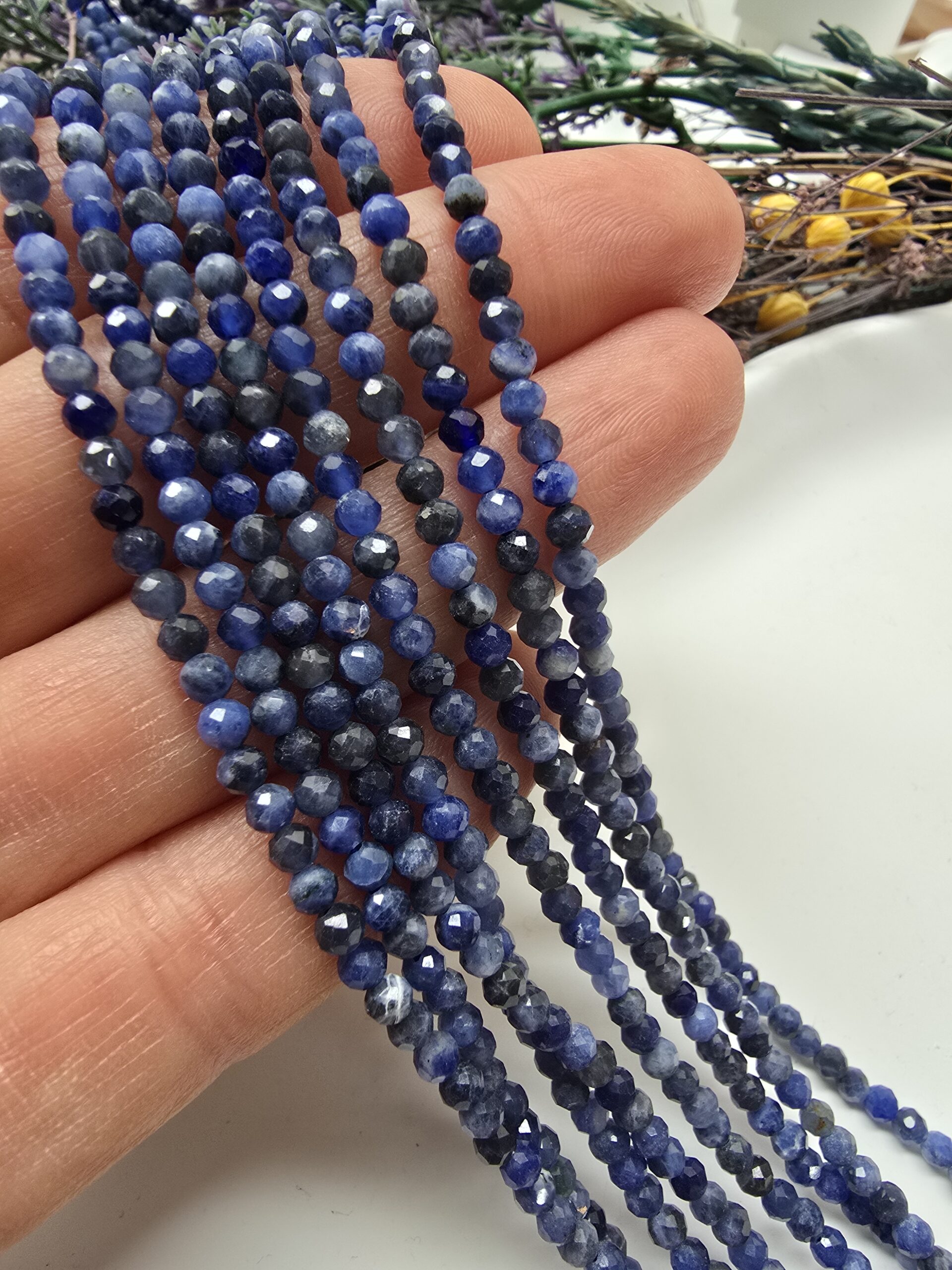 - 1 dizi Sodalit faset kesim doğal taş uzunluğu 38 cm dir.