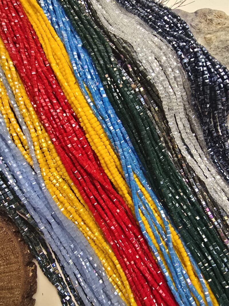 - Küp kristal boncuklar cam malzeme olup parlak ve ışıltılıdır.