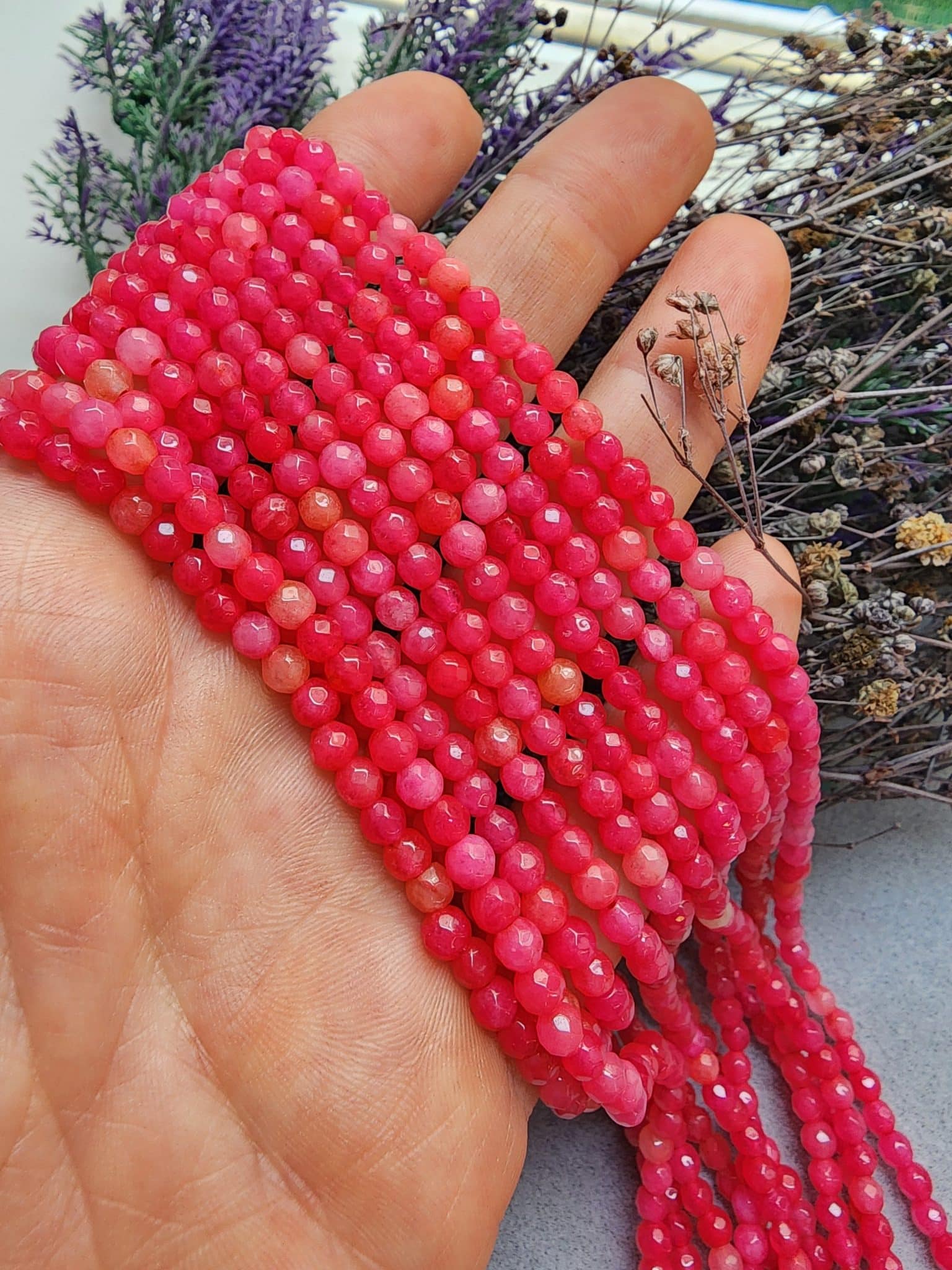 - Faset Kesim Rodokrozit Renkli Kuvars Taşı Boncuklar 1 dizi uzunluğu 40 cm dir.