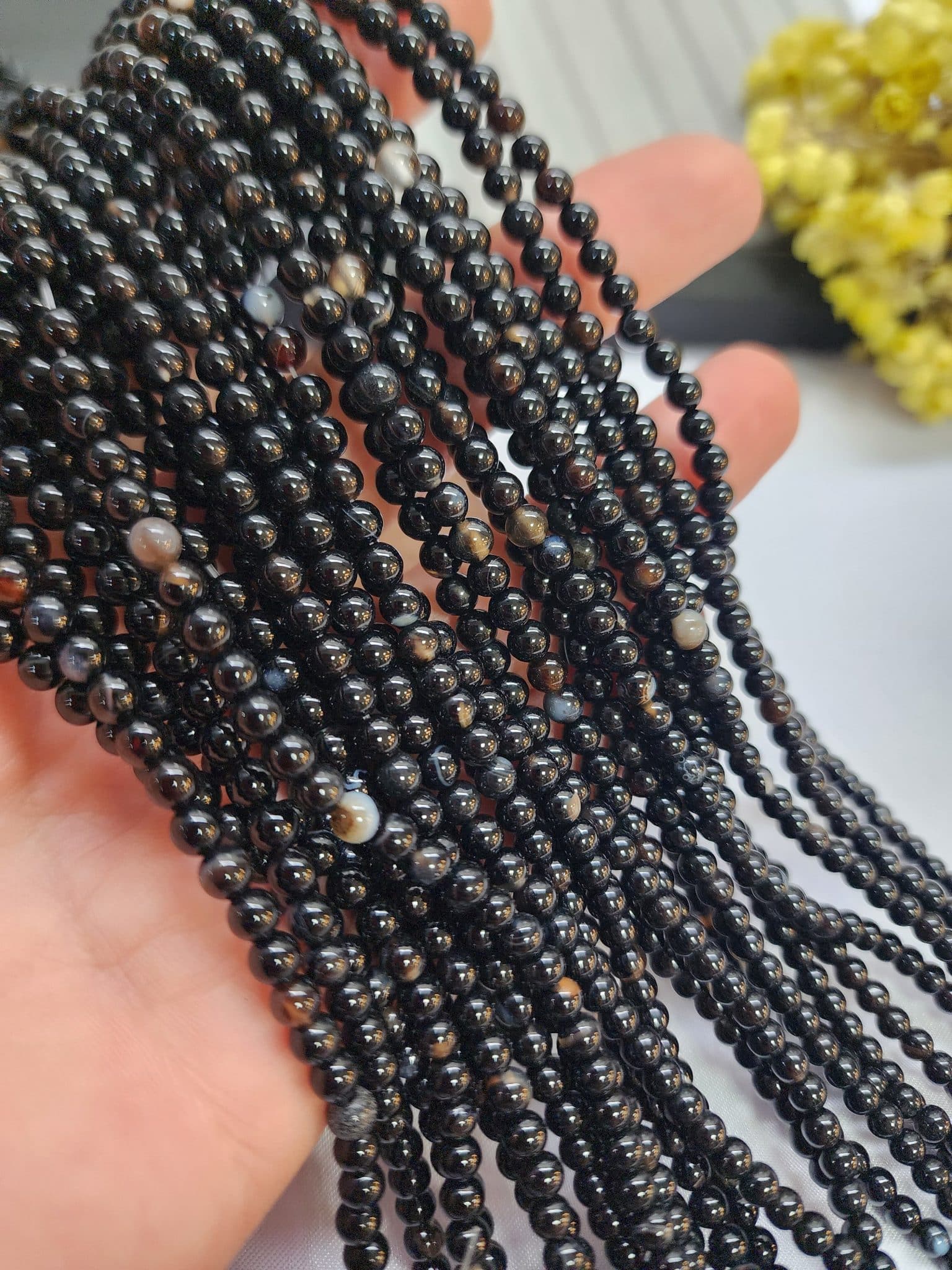 - 4 mm Siyah küre kesimli damarlı akik taşıdır.