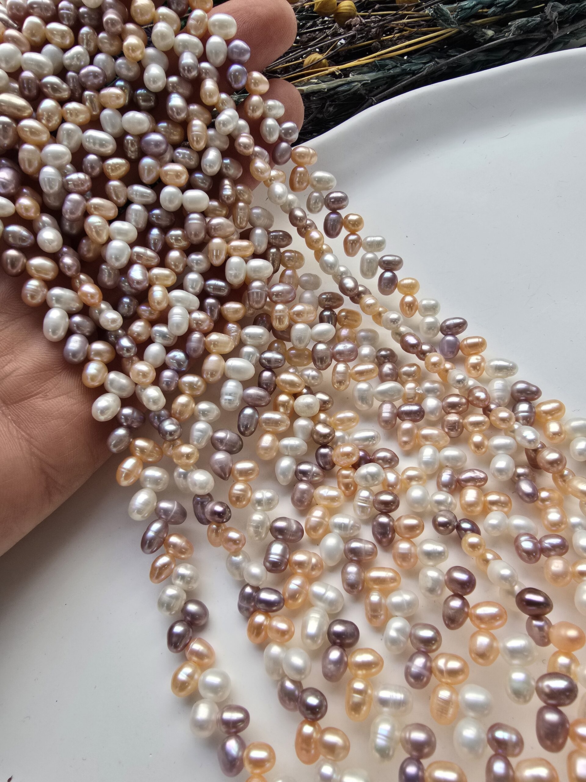 4 MM Mix Premium Yandan Delikli Damla Barok Doğal İnci