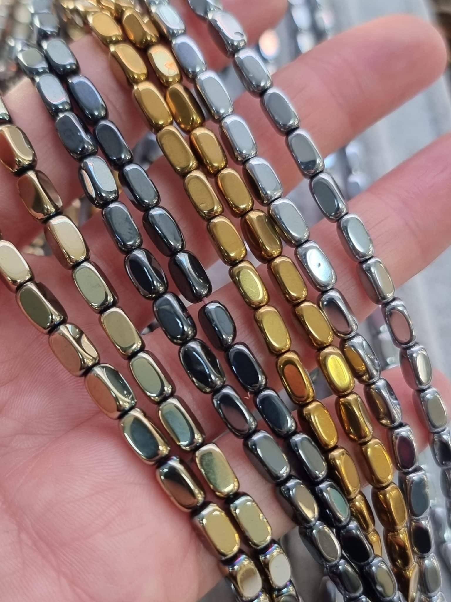 - 1 dizi 4×8 MM Dikdörtgen Hematit Doğal Taş 50-52 Adettir