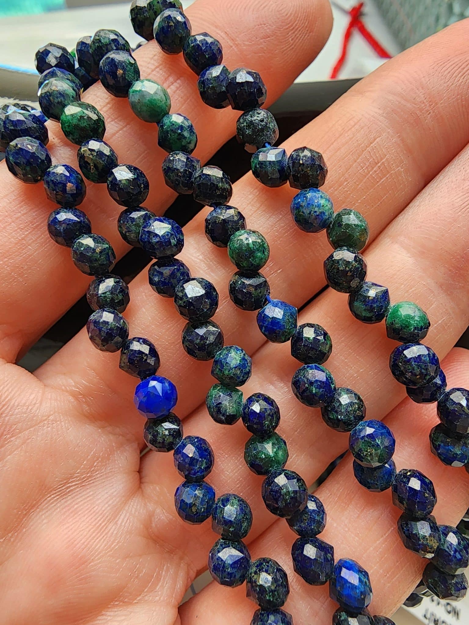 1 dizi 5 MM Piramit Damla Azurit Taşında 82 Adet Taş Boncuk Bulunur.