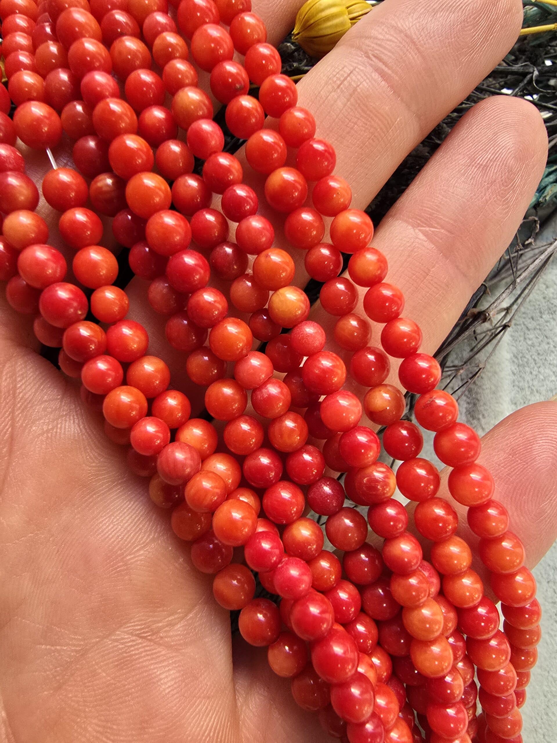 - 1 dizi 5 mm küre doğal mercan taşında 80-85 Adettir..