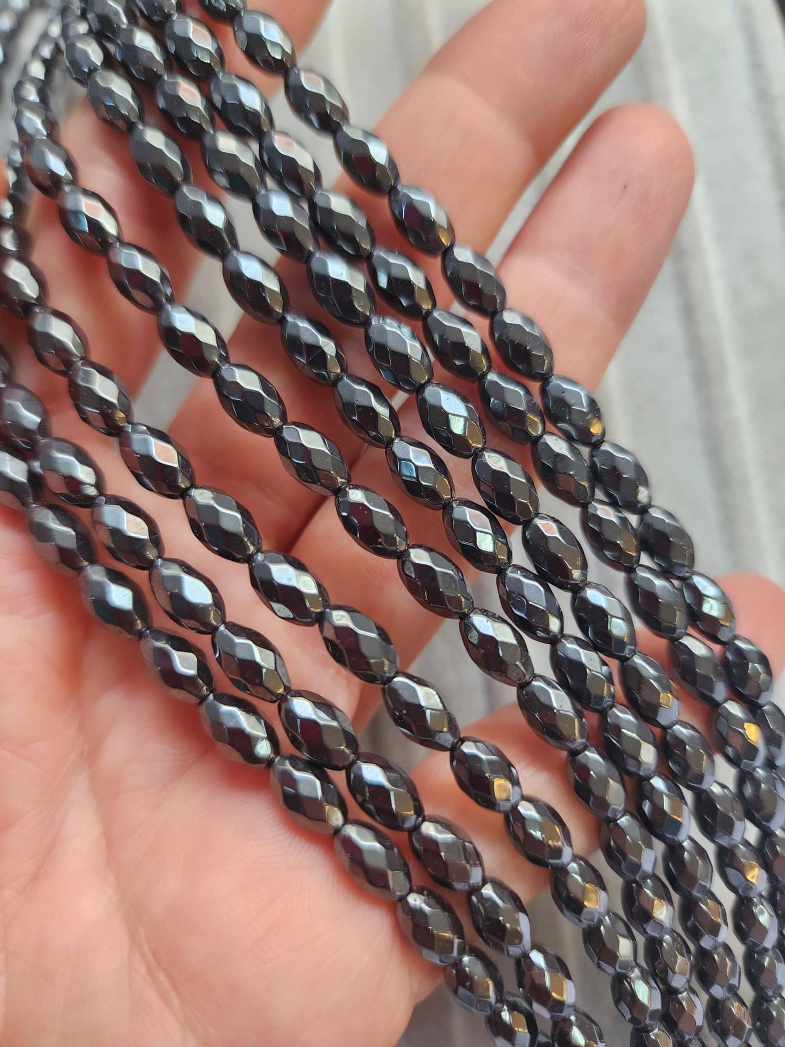 - 1 dizi 5×8 mm fasetli arpa hematit doğal taşı 50-52 adetten oluşur.