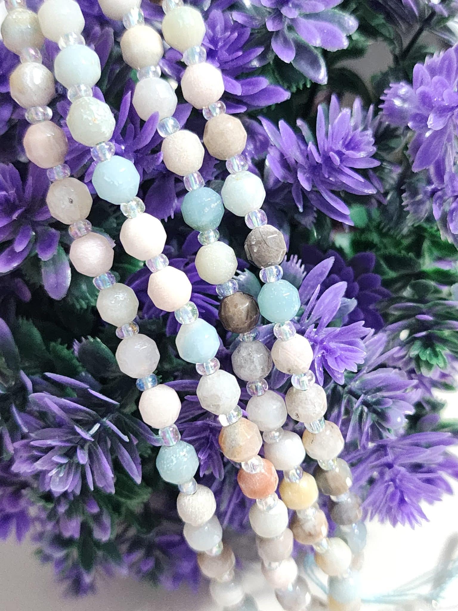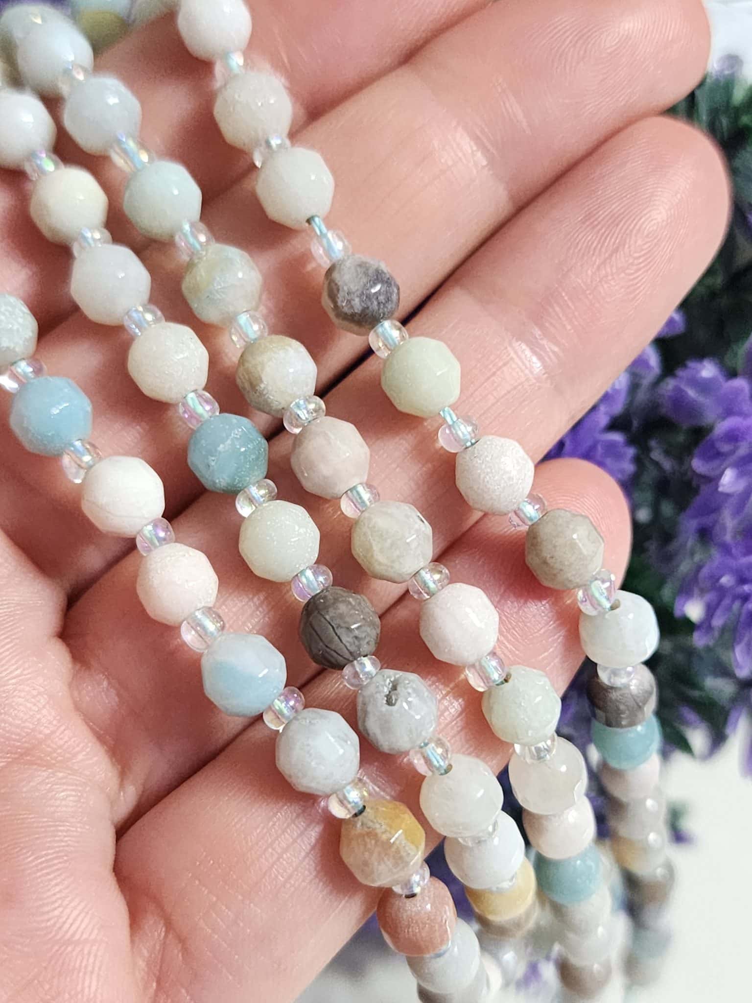 - 6 MM Çokgen Amazonit dizi doğal taş 44 taneden oluşur.