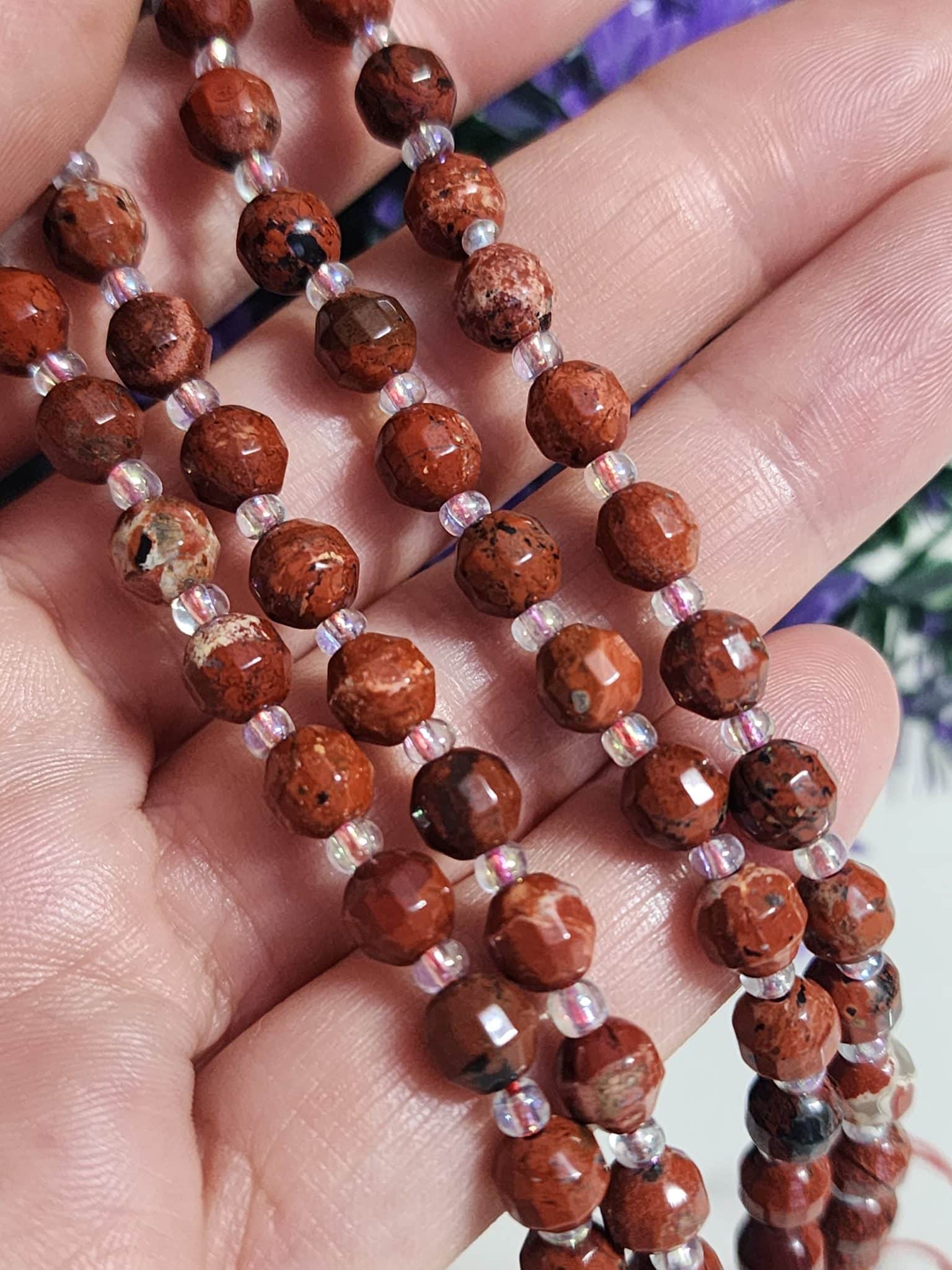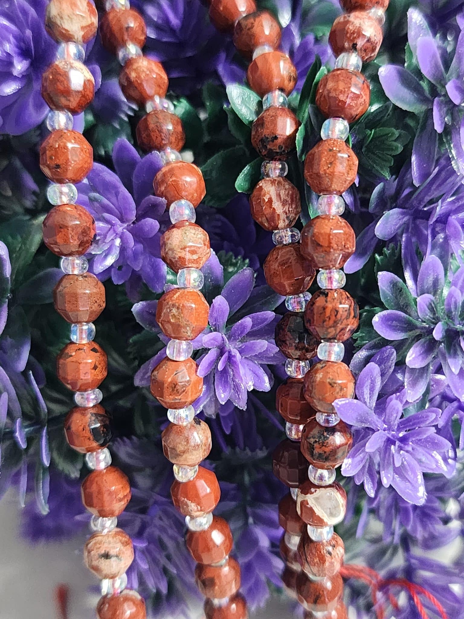 - 6 MM Çokgen Jasper dizi doğal taş 44 taneden oluşur.