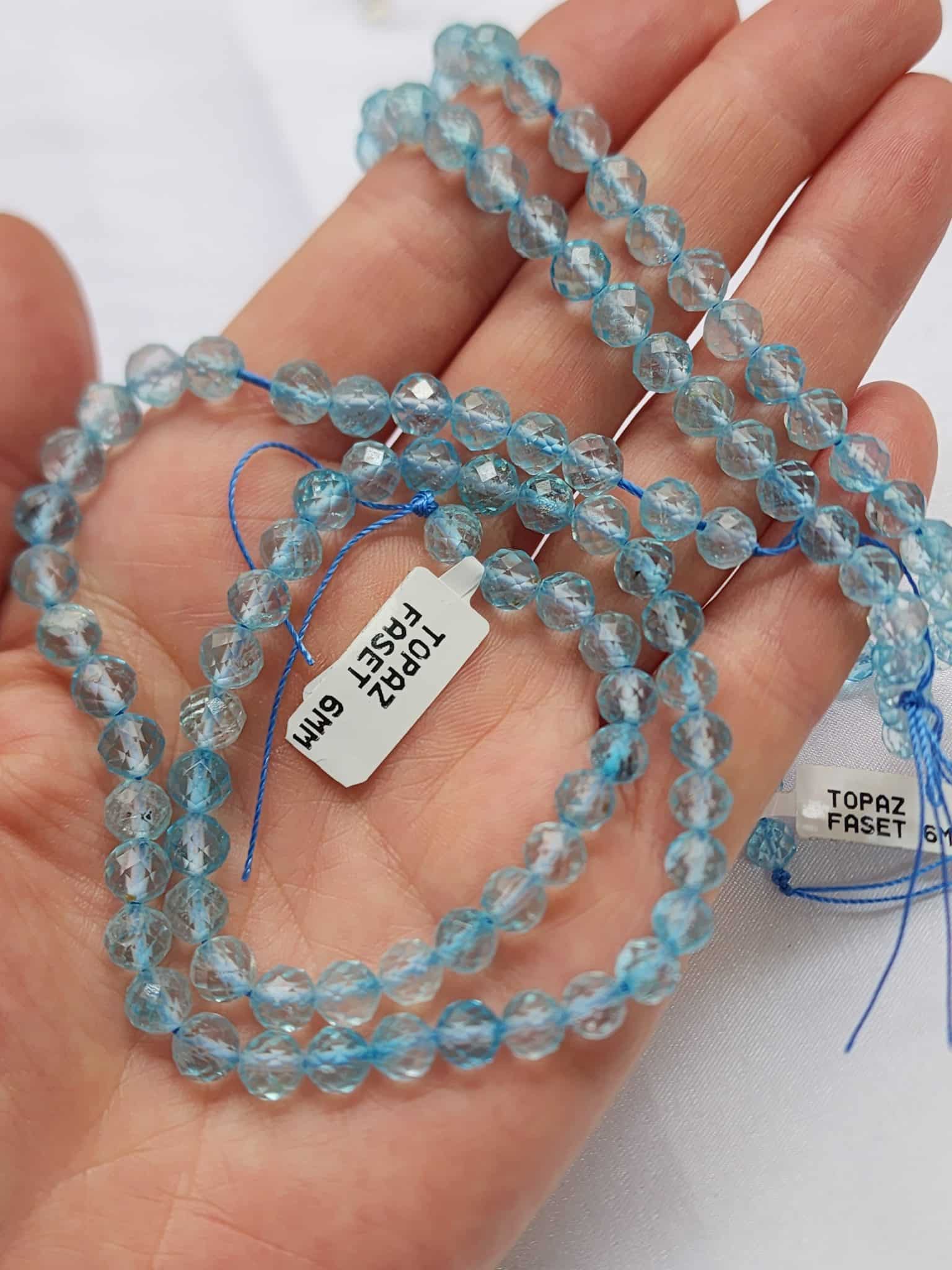 - 1 dizi Topaz taşı 60-62 adet doğal taş boncuktan oluşur.