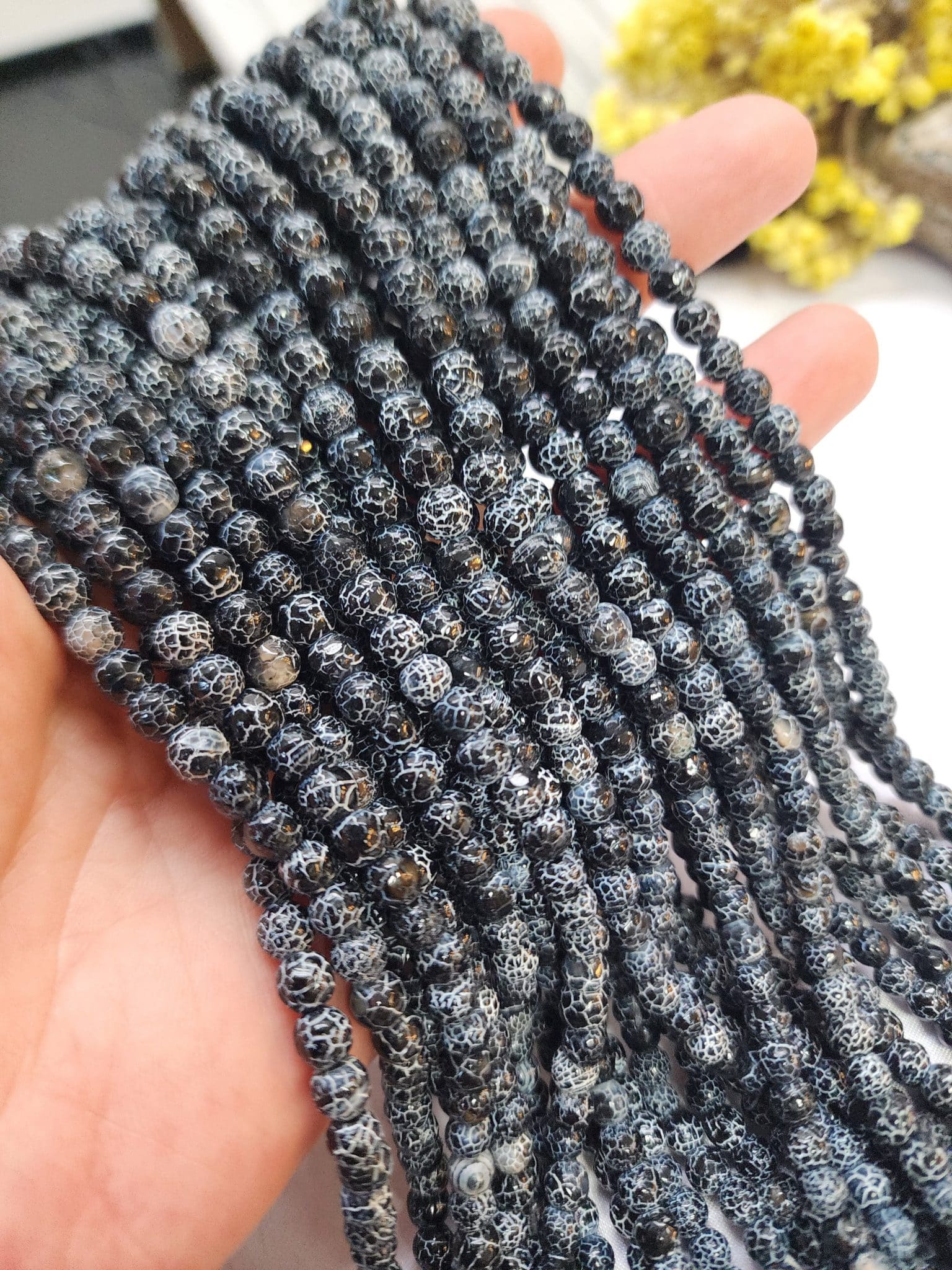 - Orijinal Damarlı Siyah faset kesimli akik taşı boncuğu olup 1. kalitedir.