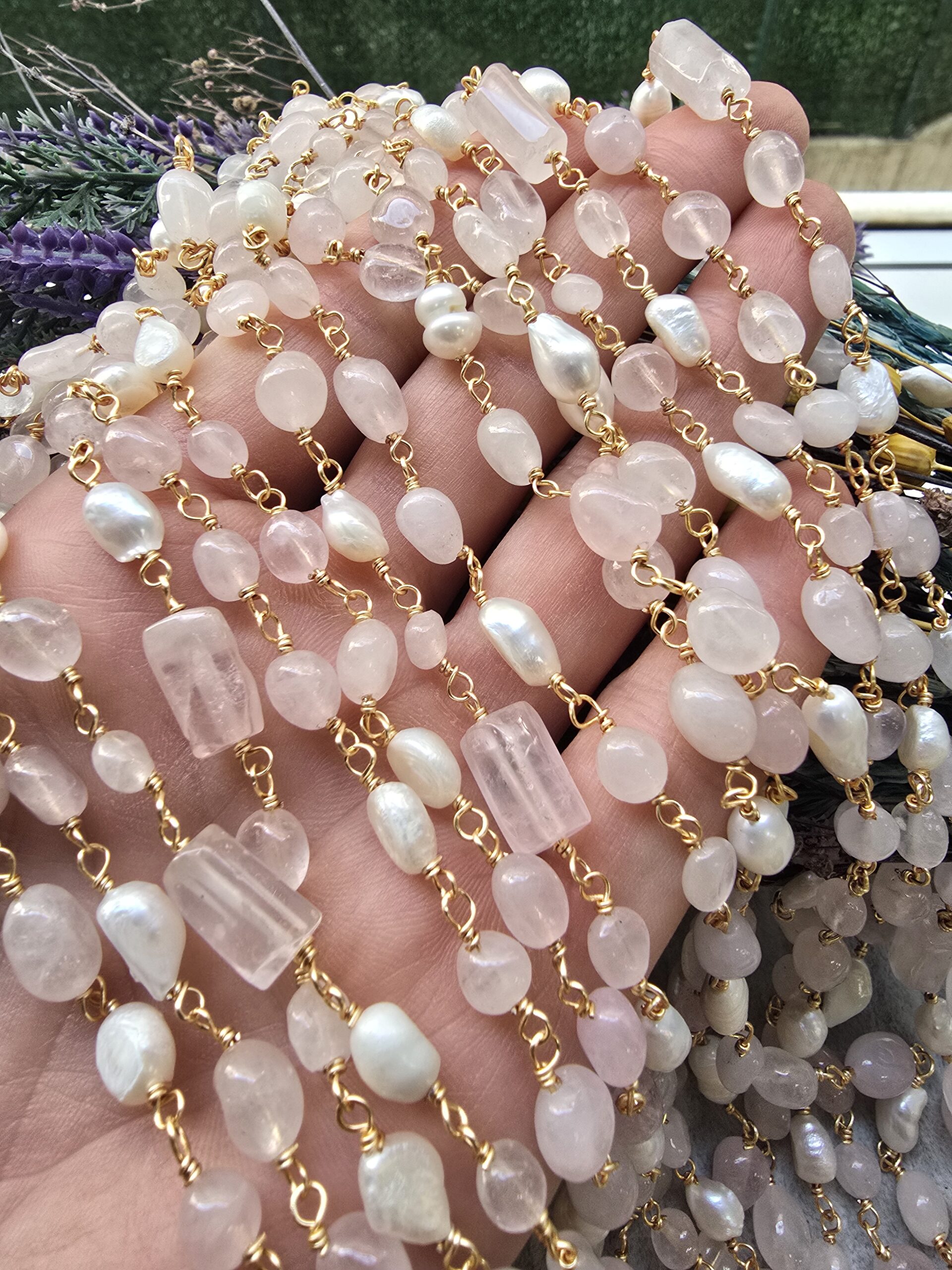 6 MM Gerçek Barok Doğal İnci ve Pembe Kuvars Takı Zinciri