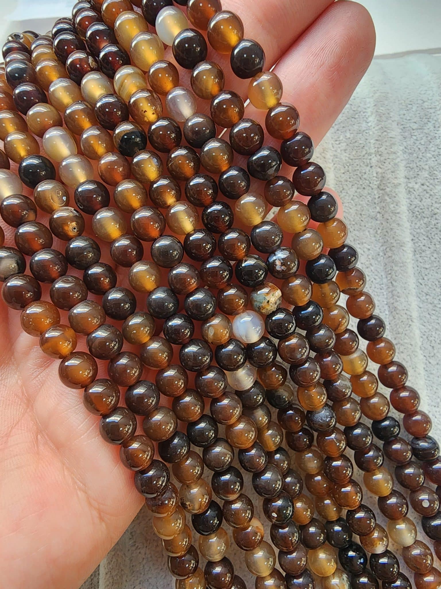 - 6 MM Acı Kahve Küre Dizi Akikleri içerindeki kayaç yapısından dolayı renk farklılıkları gösterebilir. Bu tamamen taşın doğallığından kaynaklanmaktadır.
