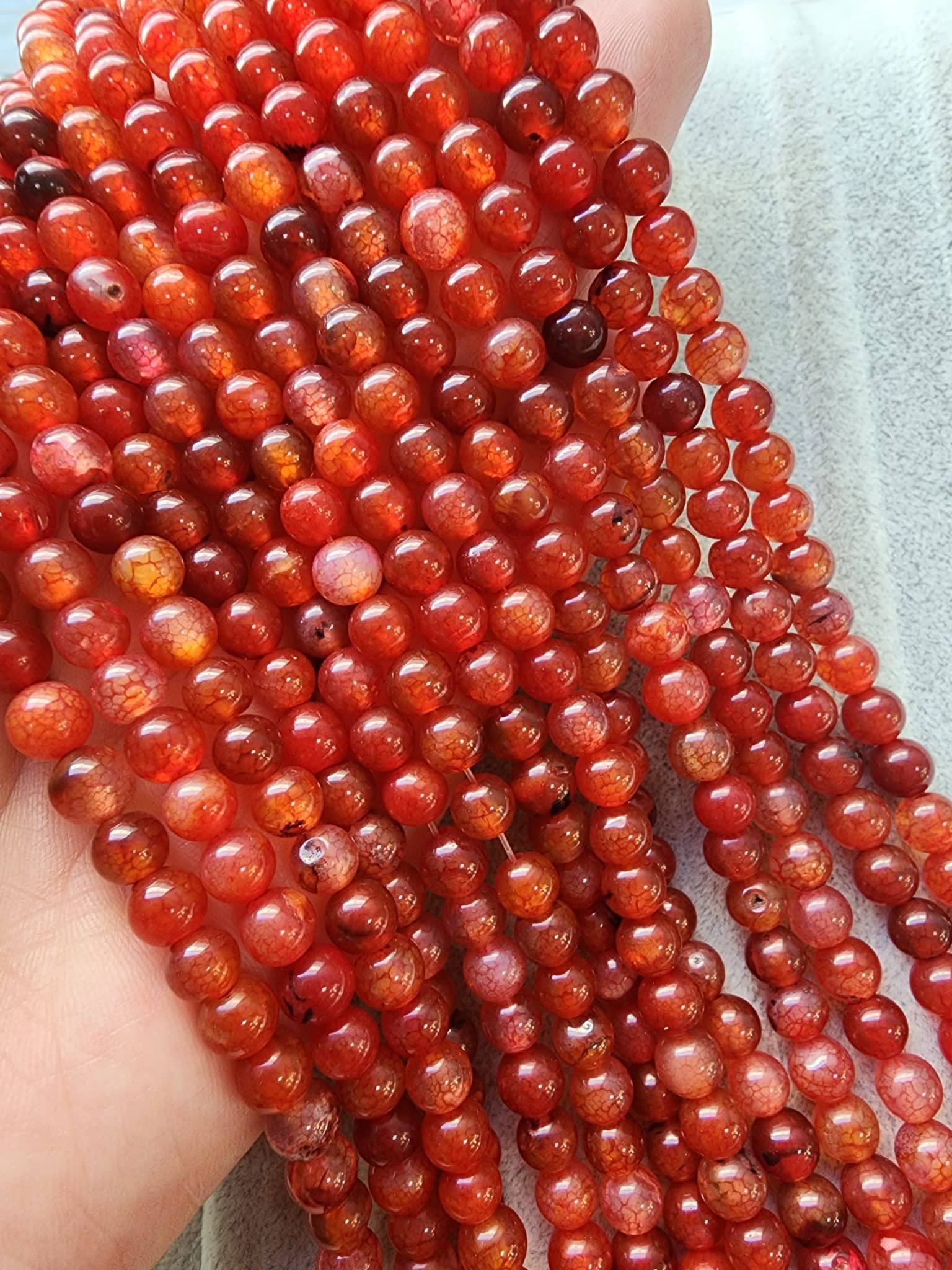 - 6 MM Ateş Küre Dizi Akikleri içerindeki kayaç yapısından dolayı renk farklılıkları gösterebilir. Bu tamamen taşın doğallığından kaynaklanmaktadır.