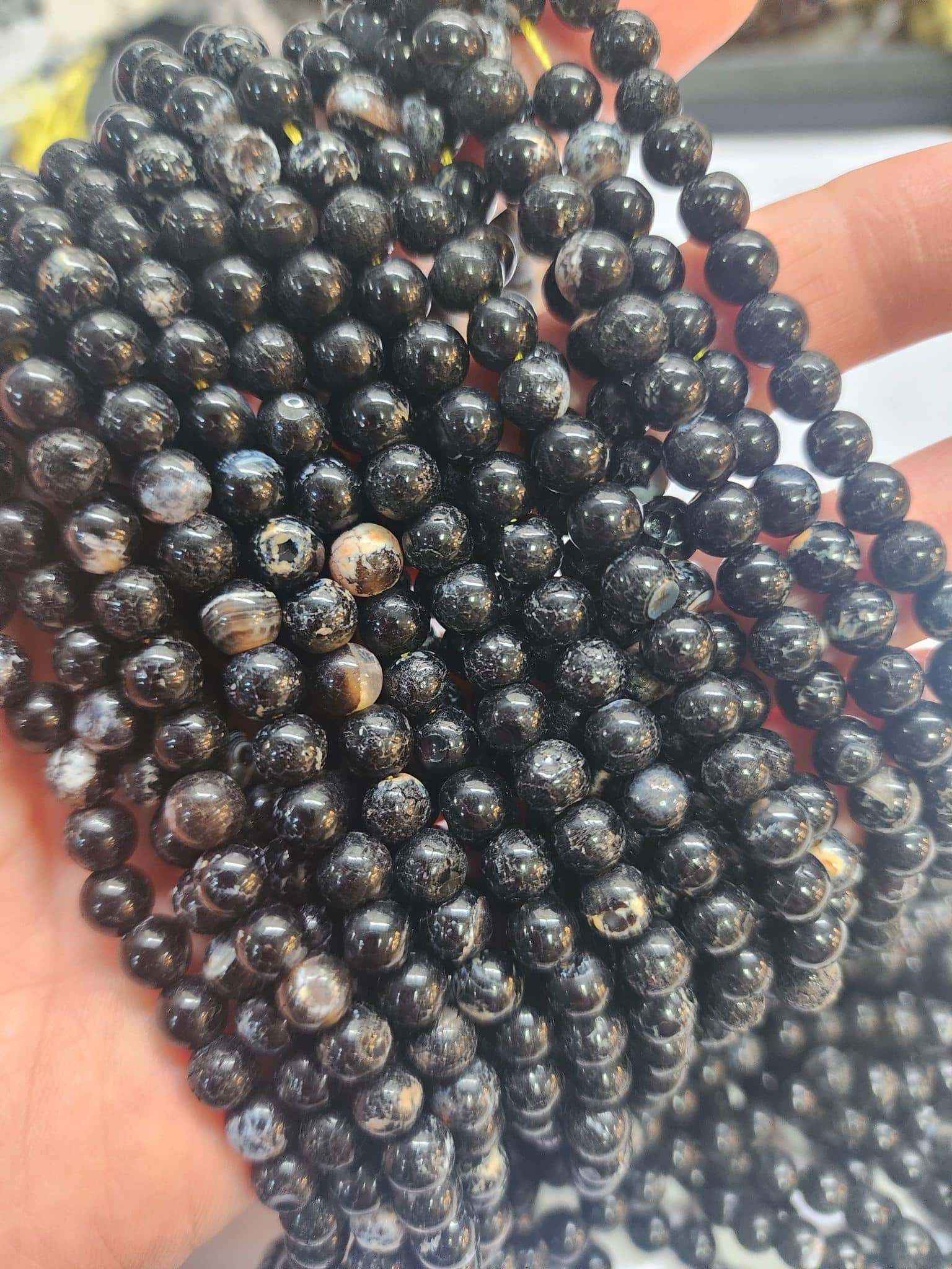 6 MM Küre Benekli Siyah Akik Taşı :