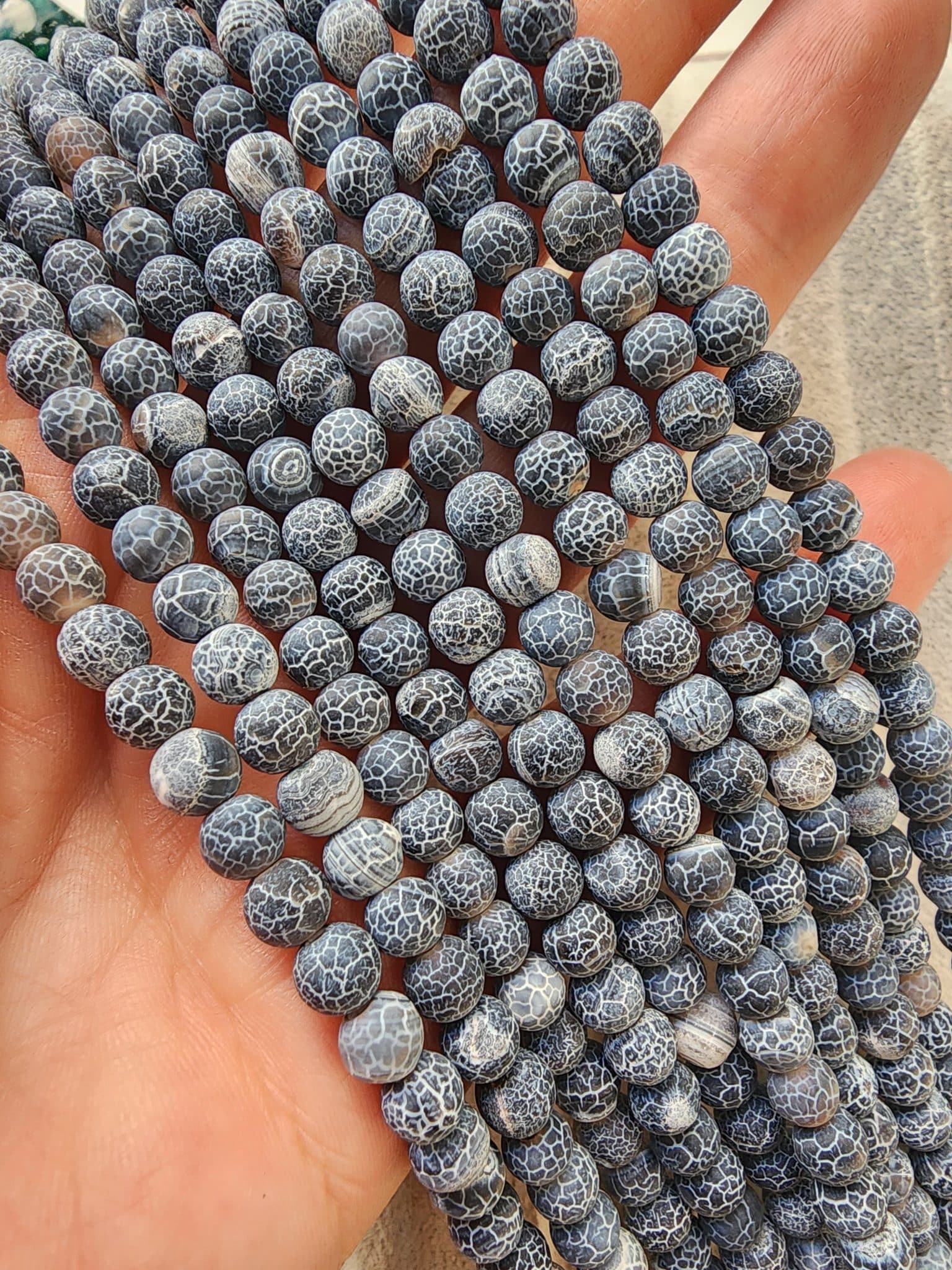 6 MM Küre Mat Damarlı Siyah Akik Taşı :