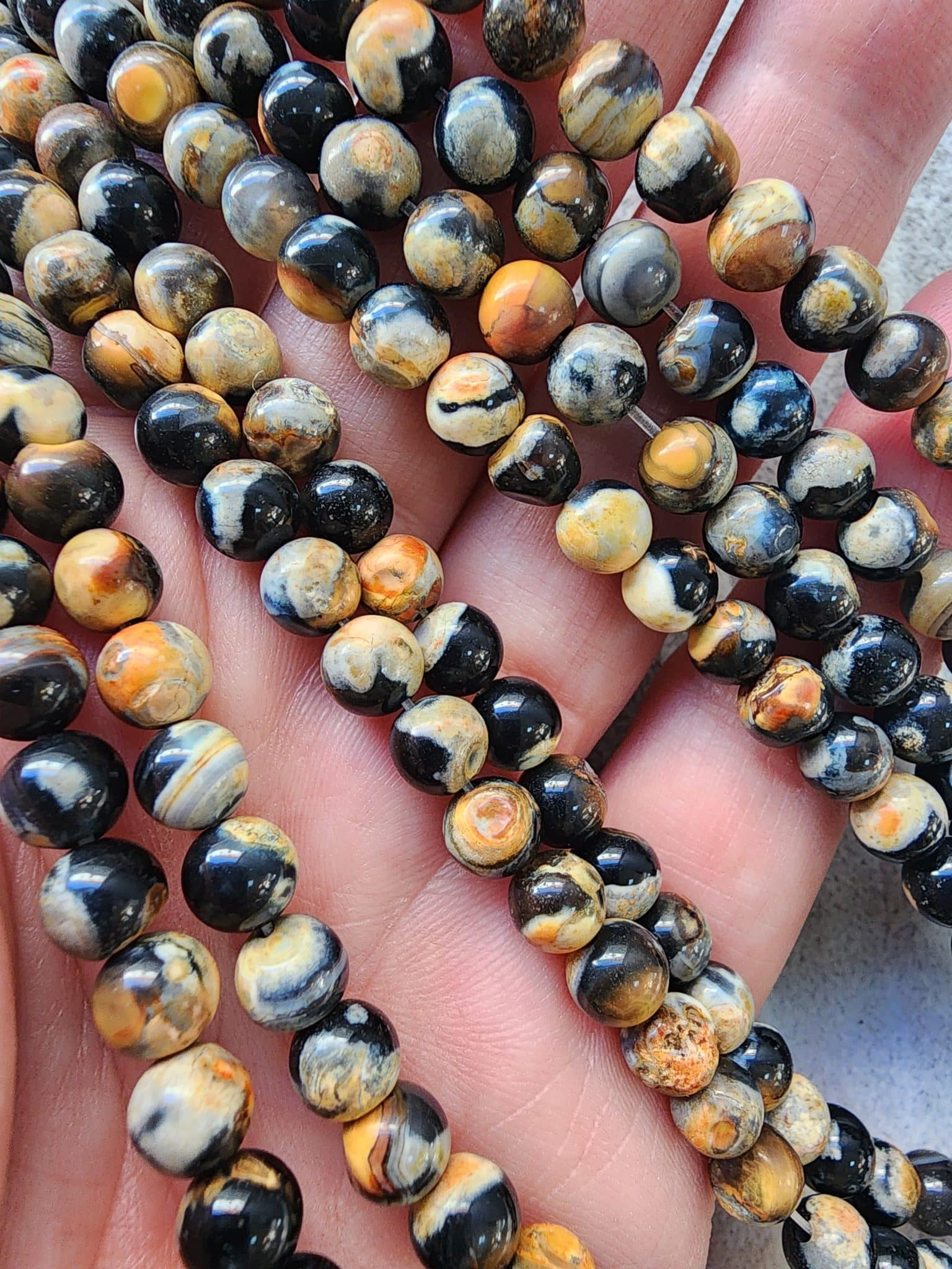 - Siyah Sarı Akik Doğal Taşın çapı 6 mm dir.
