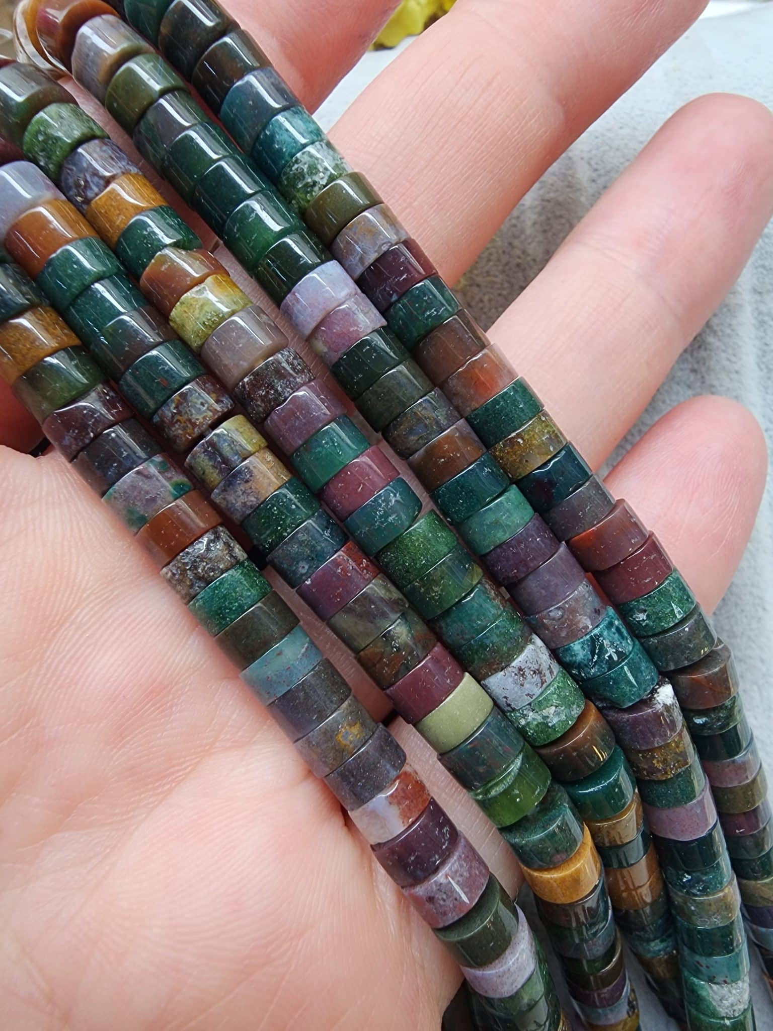 - 1 dizi Hint Akik Rondela kesim doğal taş uzunluğu 38 cm dir.