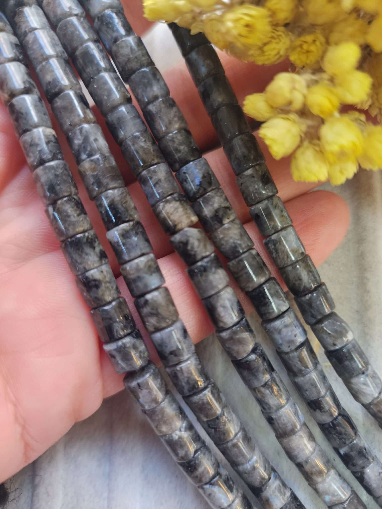 - 6×6 MM Silindir Lavrakit Taşı dizi doğal taşı 58-60 taneden oluşur.