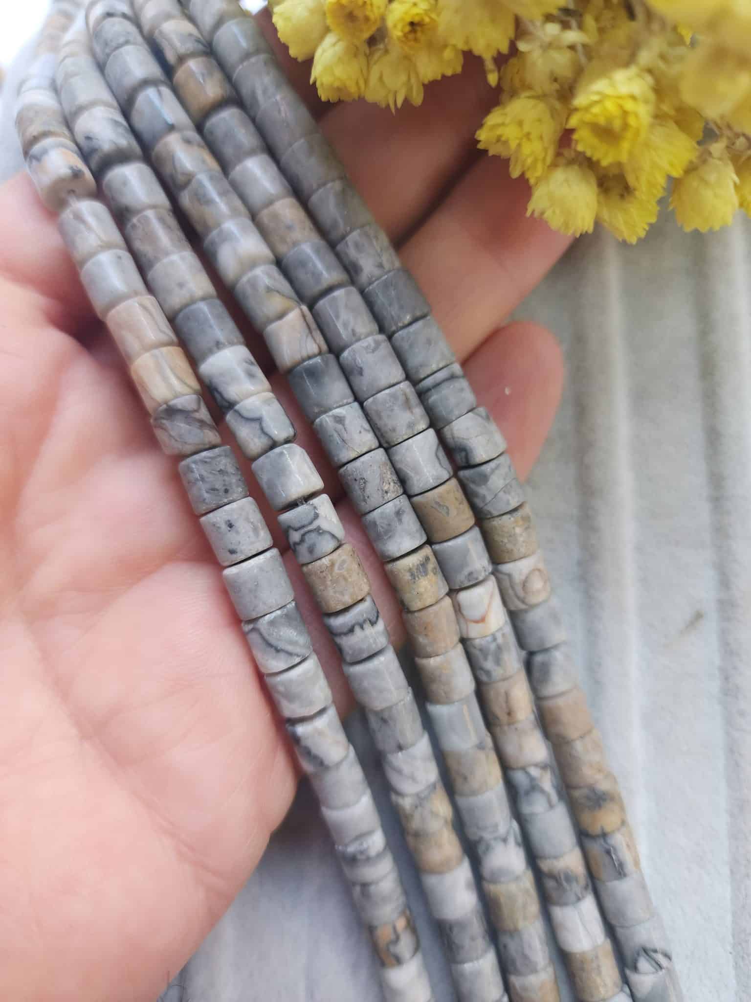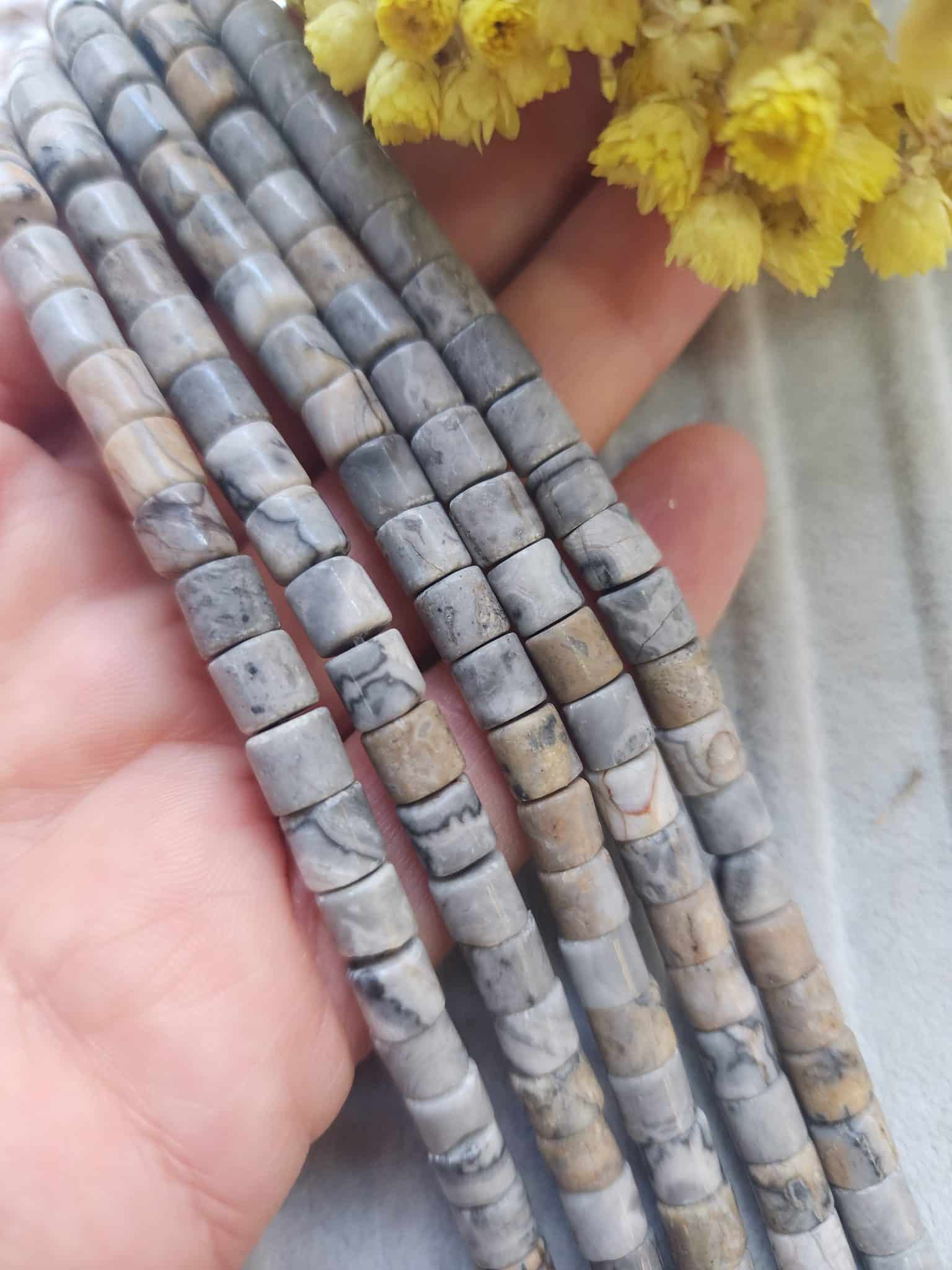 - 6×6 MM Silindir Toprak Jasper Taşı dizi doğal taşı 58-60 taneden oluşur.