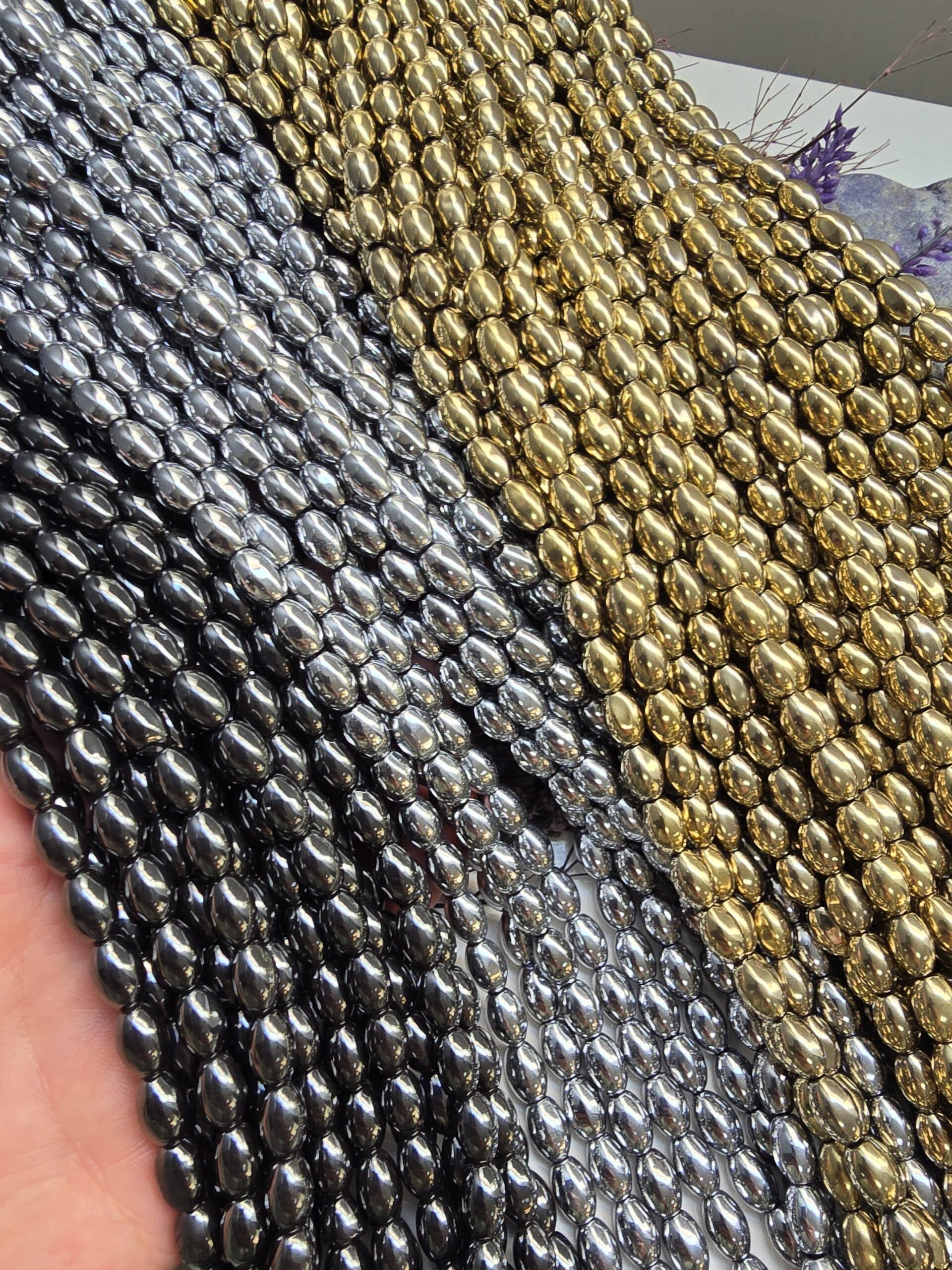 - 1 dizi 6×9 mm arpa hematit doğal taşı 42-44 adetten oluşur.