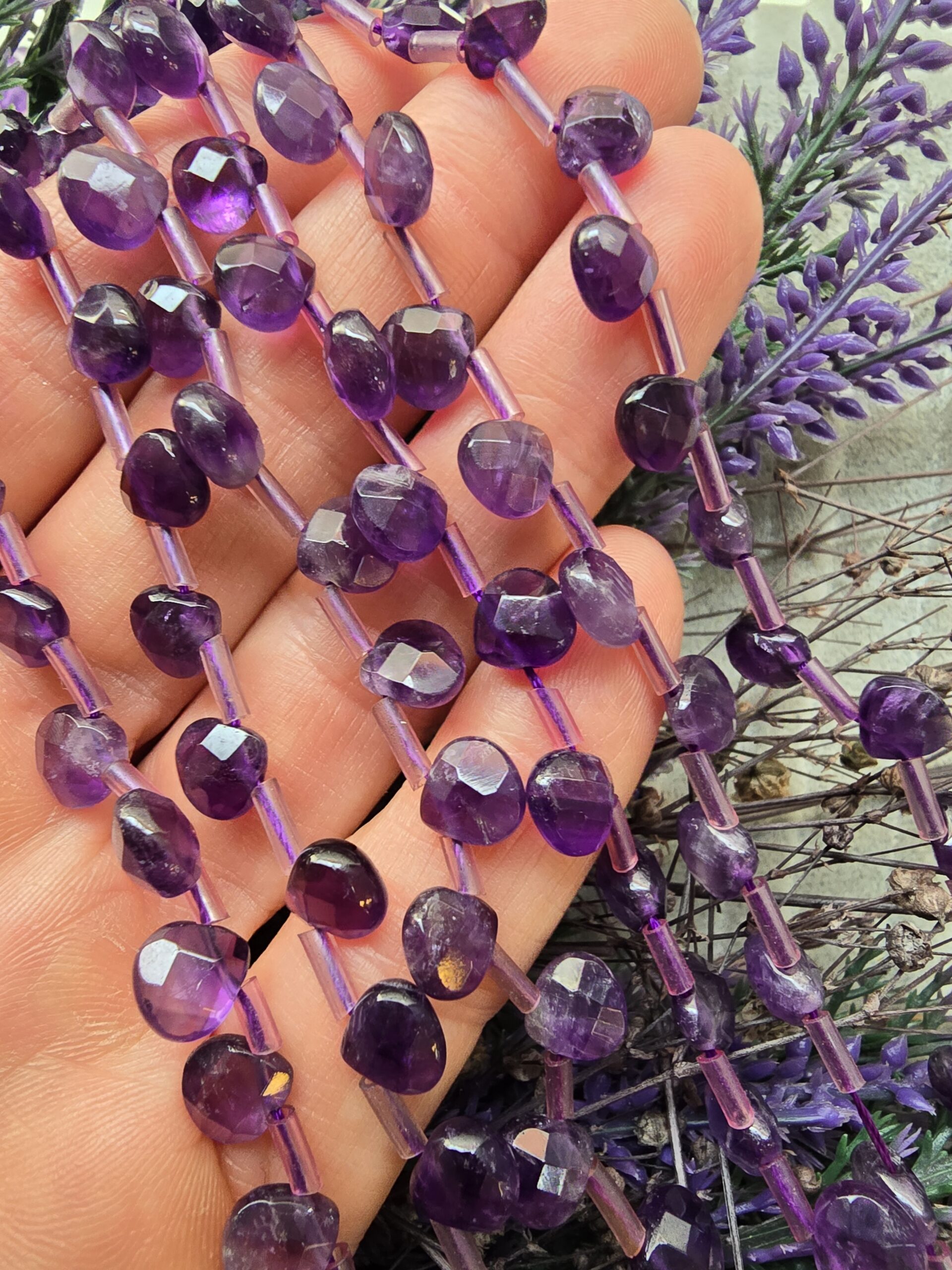 - Dikdörtgen ametist doğal taşları dizi olarak satılır.