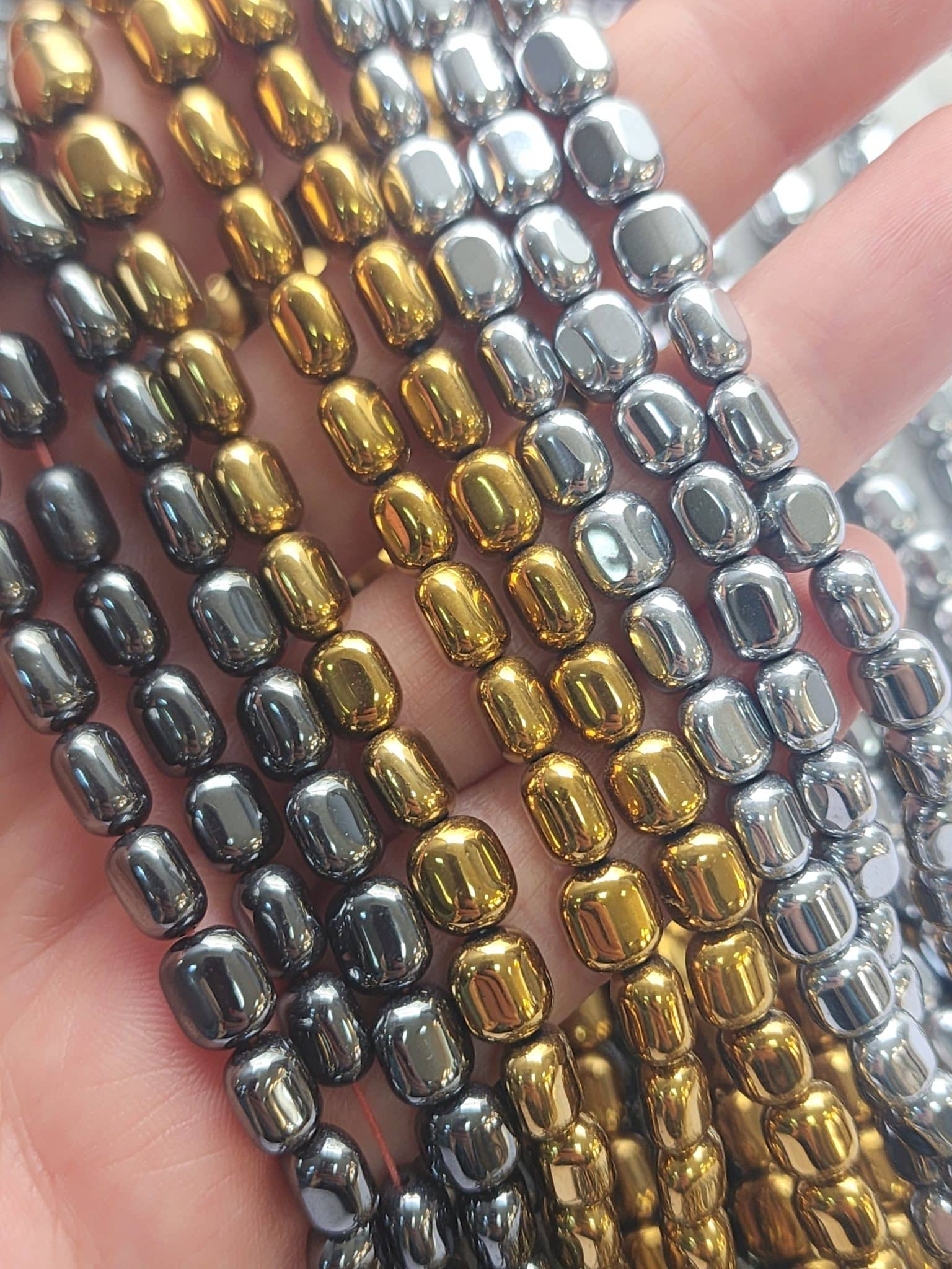 - 1 dizi 7×8 mm ezik arpa hematit doğal taşı 50 adetten oluşur.