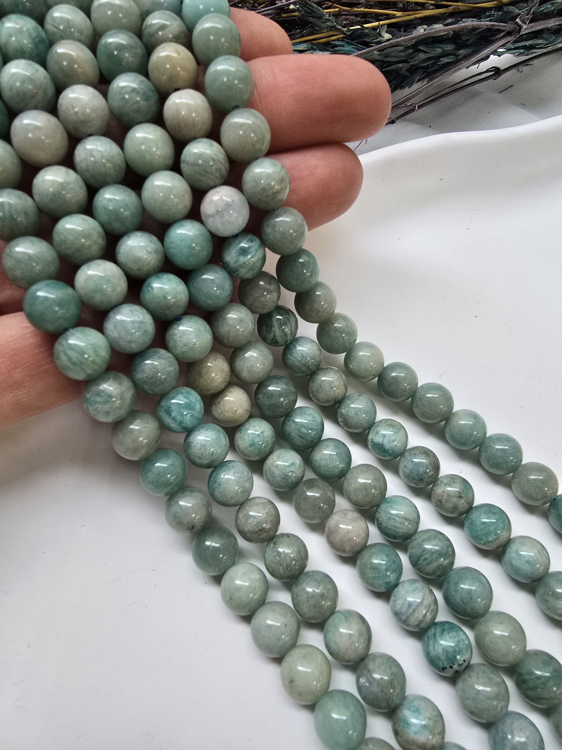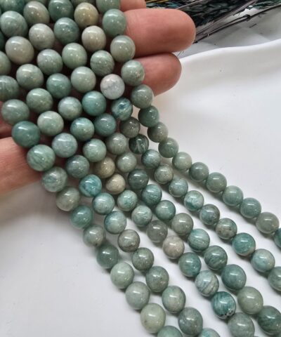 - 1 dizi 8 mm Amazonit taşı 54-55 adet doğal taş boncuktan oluşur.