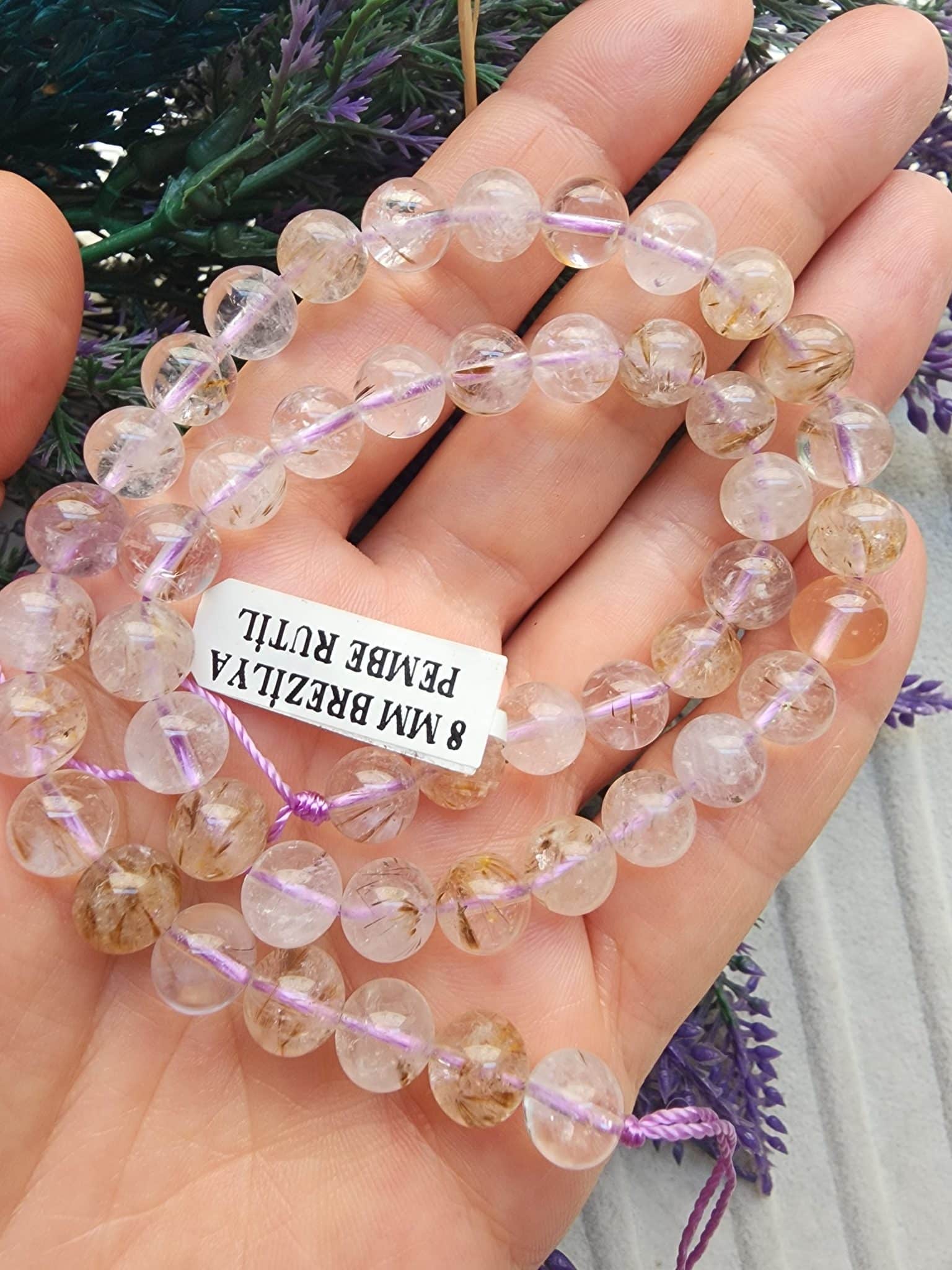 8 MM Lila Rutil Kuvars Doğal Taş Dizi :