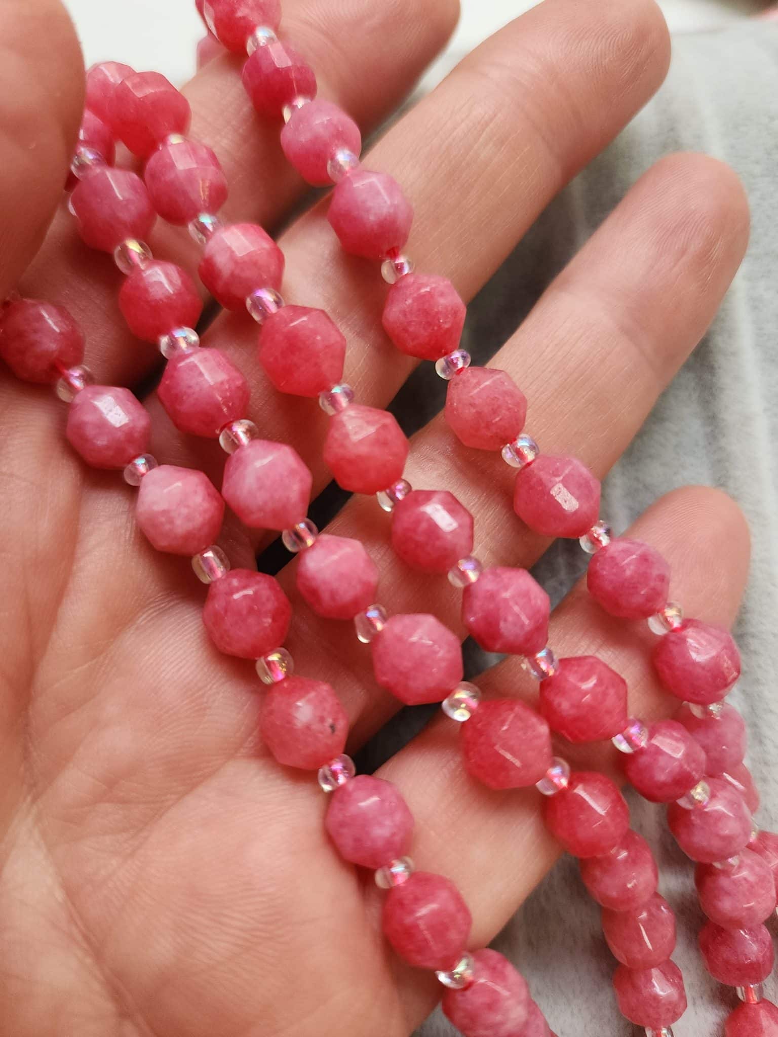 - Faset kesimli çokgen 8 mm Rodokrozit Kuvars taşı dizisi 35 adettir.