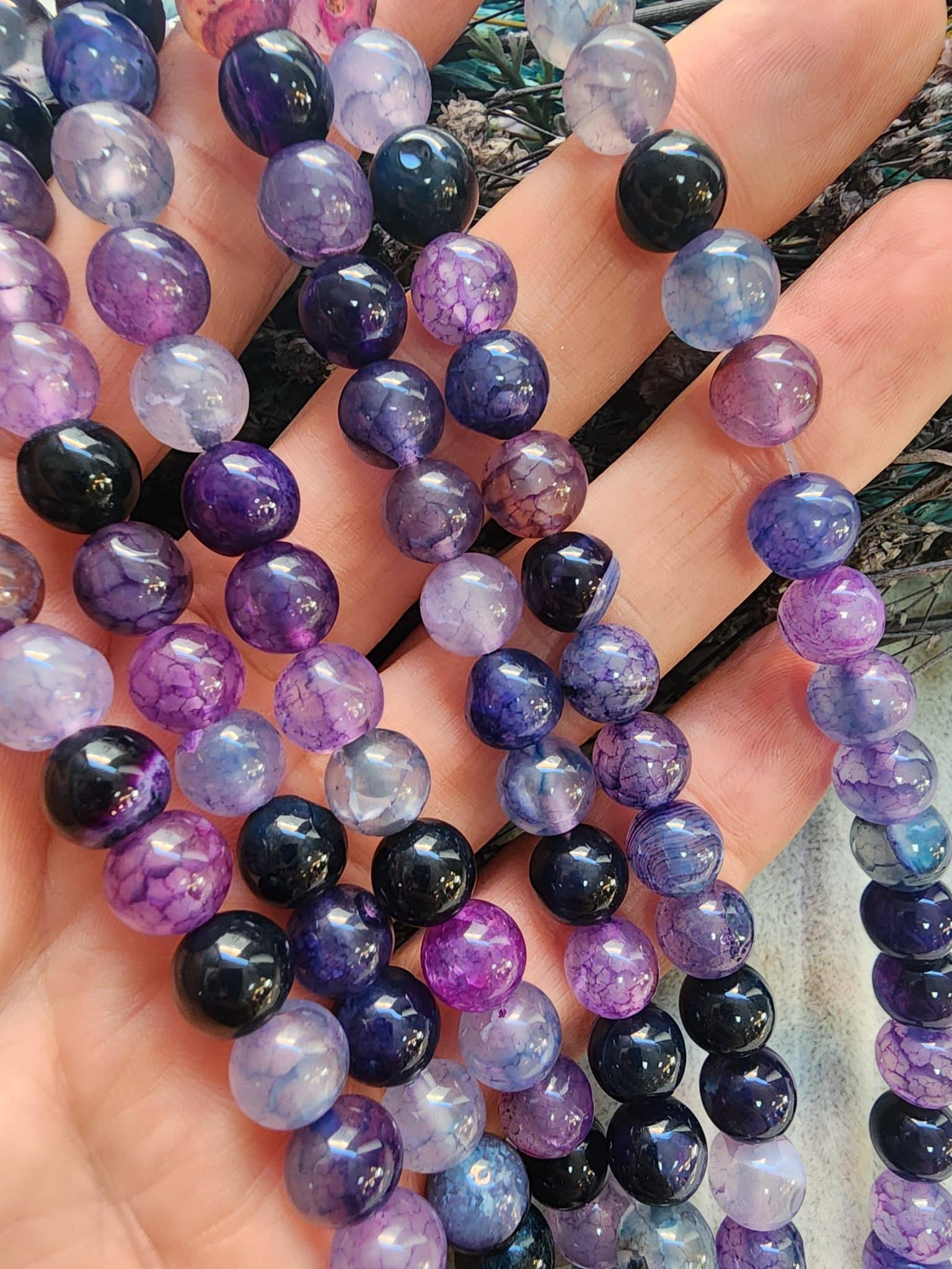 8 MM Damarlı Mor Mix Akik Taşıı :