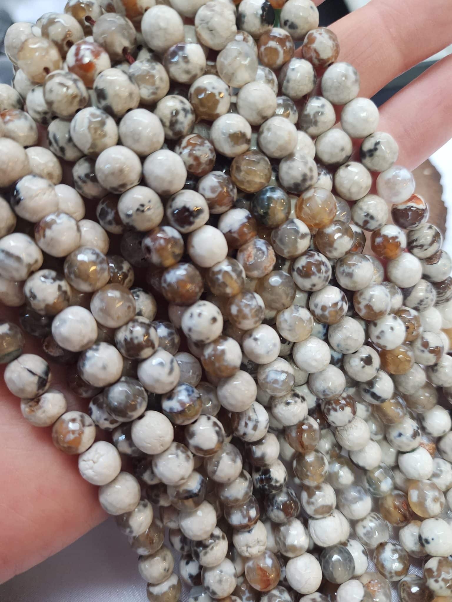 - Fasetli Bej Damarlı Akik Doğal Taşın çapı 8 mm dir.