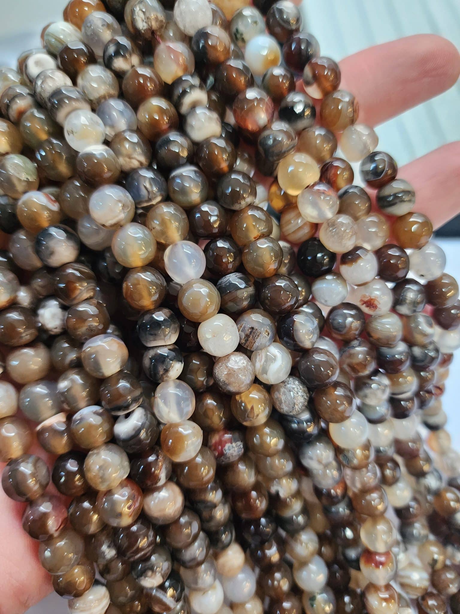 - Fasetli Kahve Damarlı Akik Doğal Taşın çapı 8 mm dir.